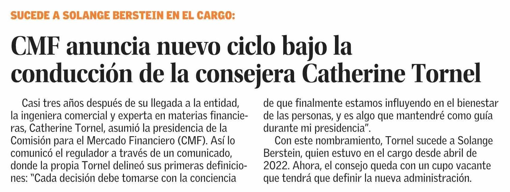 CMF anuncia nuevo ciclo bajo la conducción de la consejera Catherine Tornel