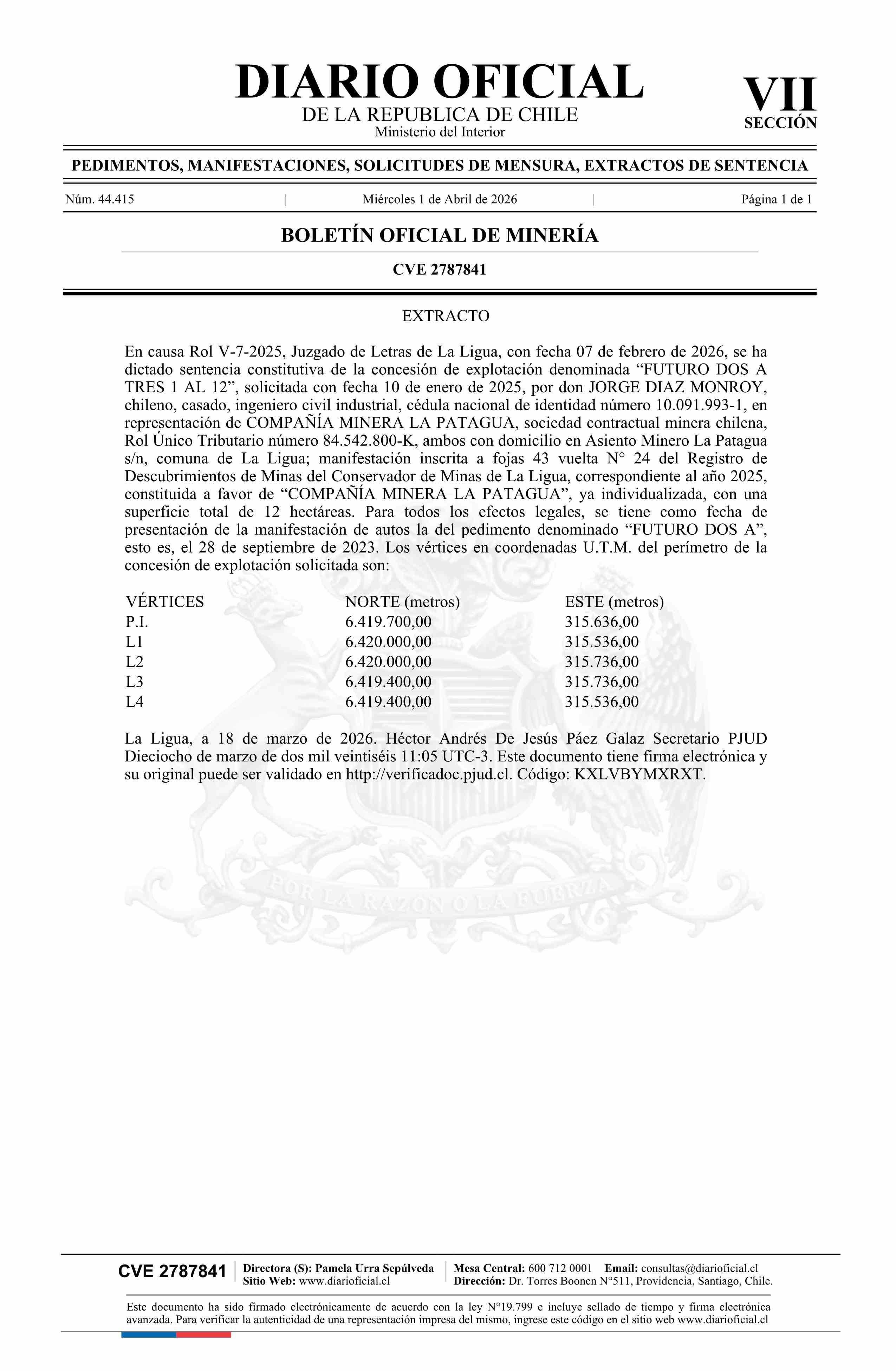 FUTURO DOS A TRES 1 AL 12 / Compañía Minera La Patagua