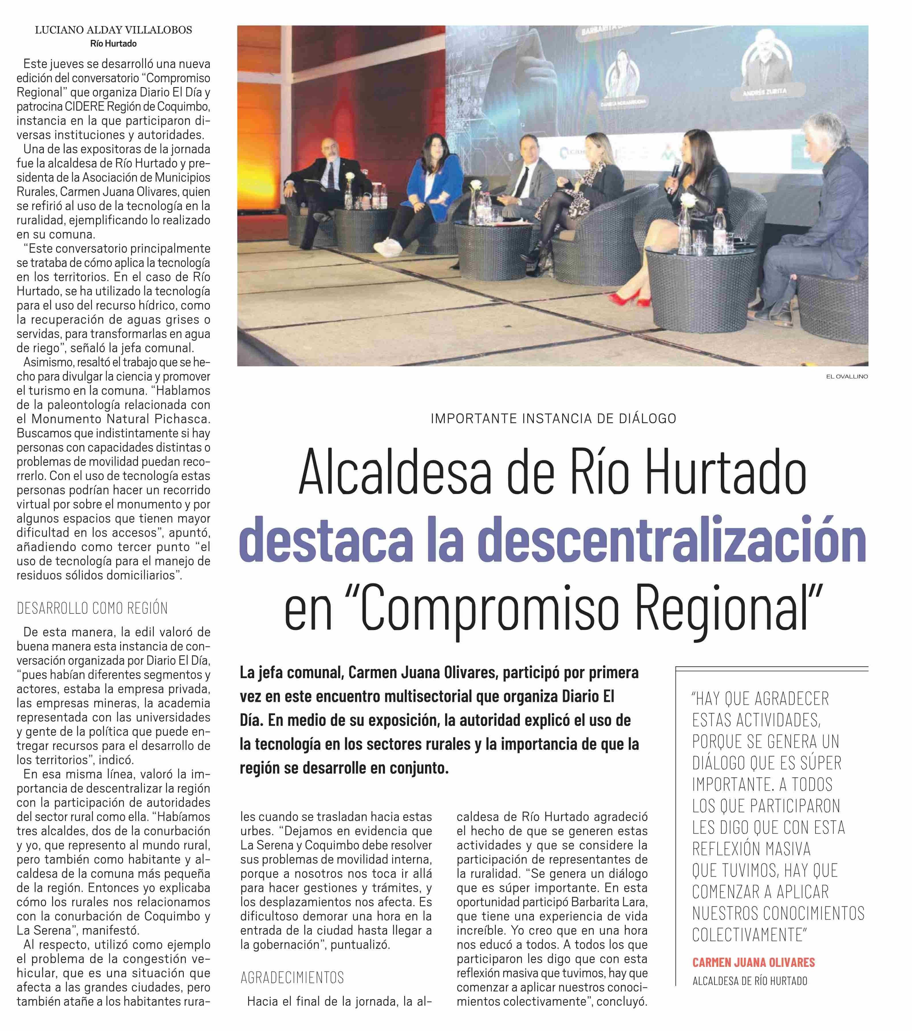 Alcaldesa de Río Hurtado destaca la descentralización en "Compromiso Regional"