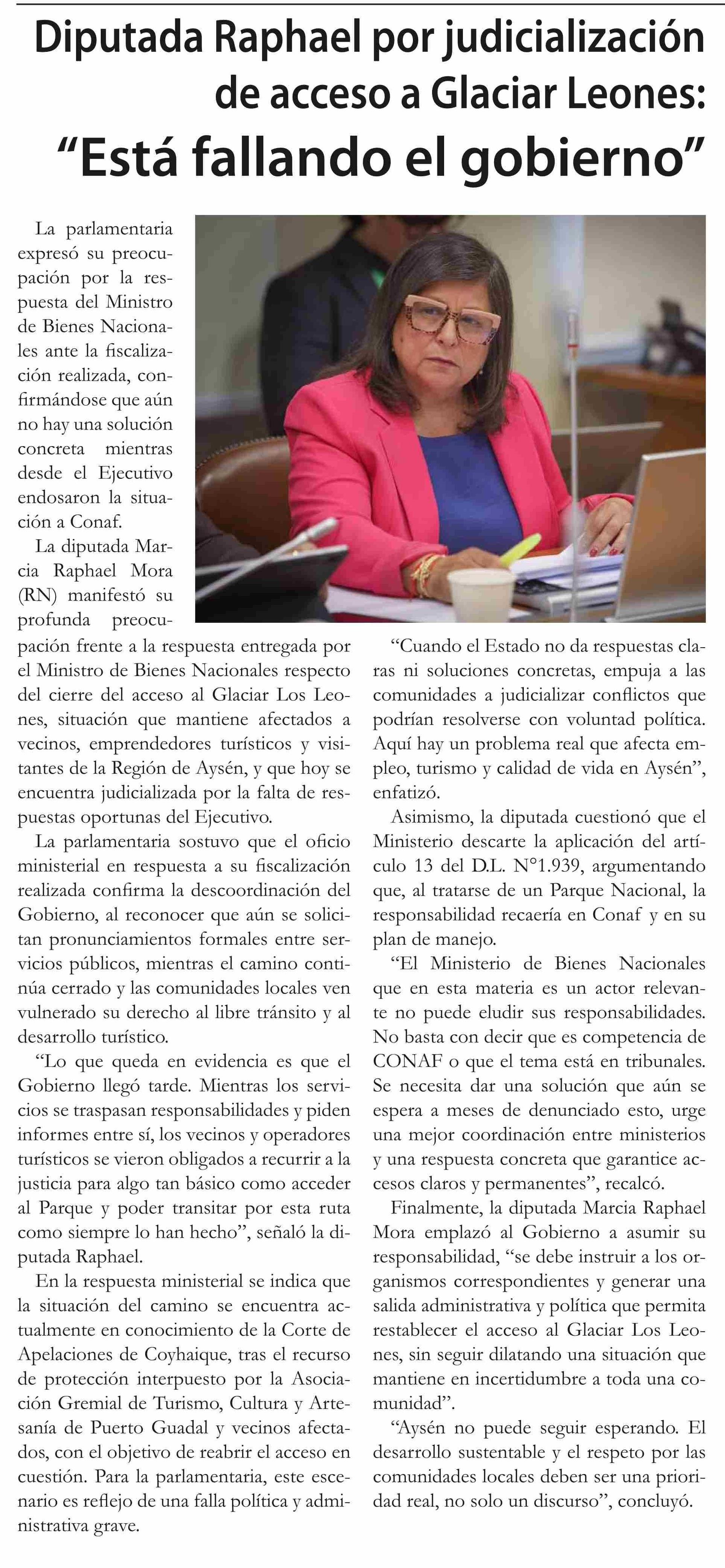 Diputada Raphael por judicialización de acceso a Glaciar Leones: "Está fallando el gobierno"