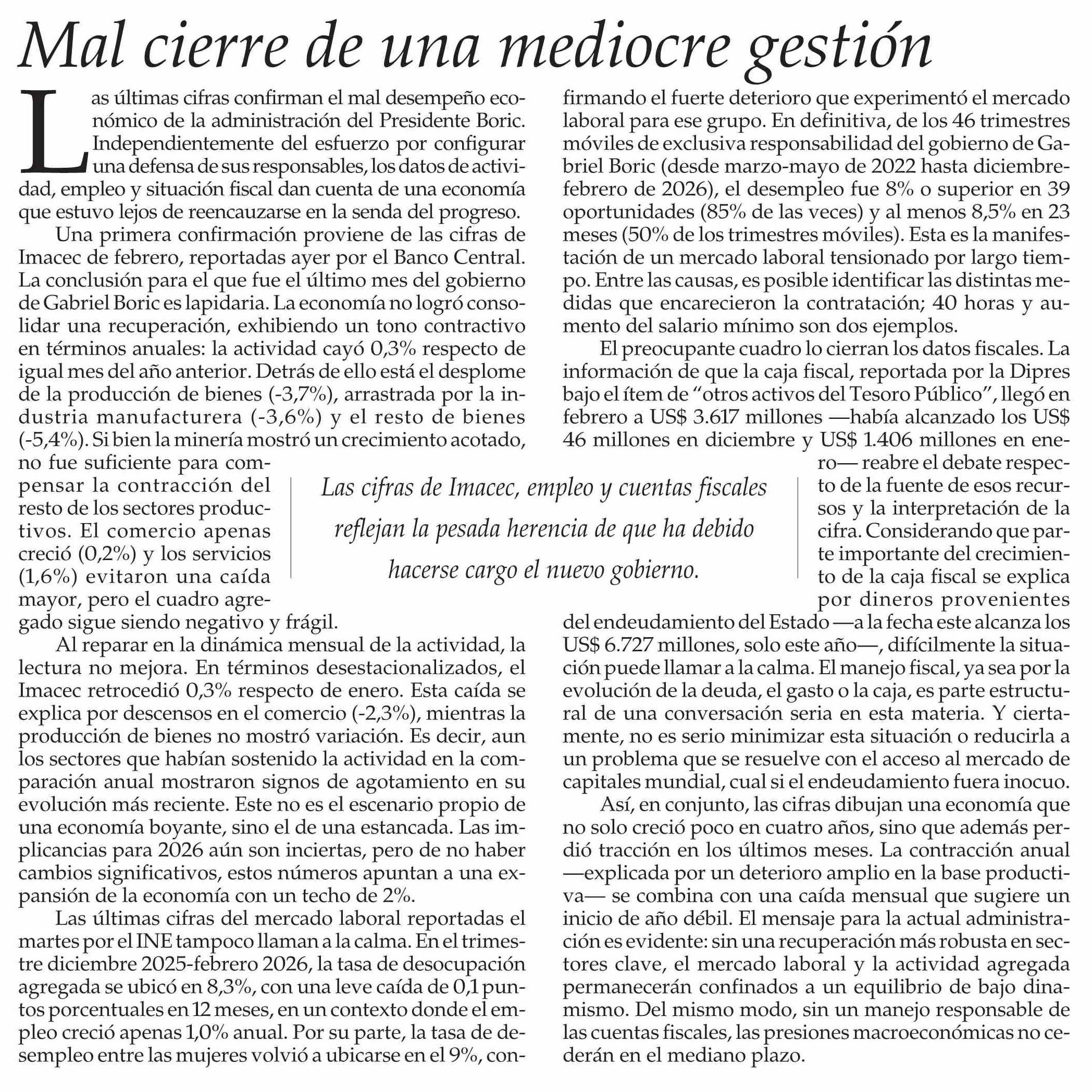 Editorial: Mal cierre de una mediocre gestión