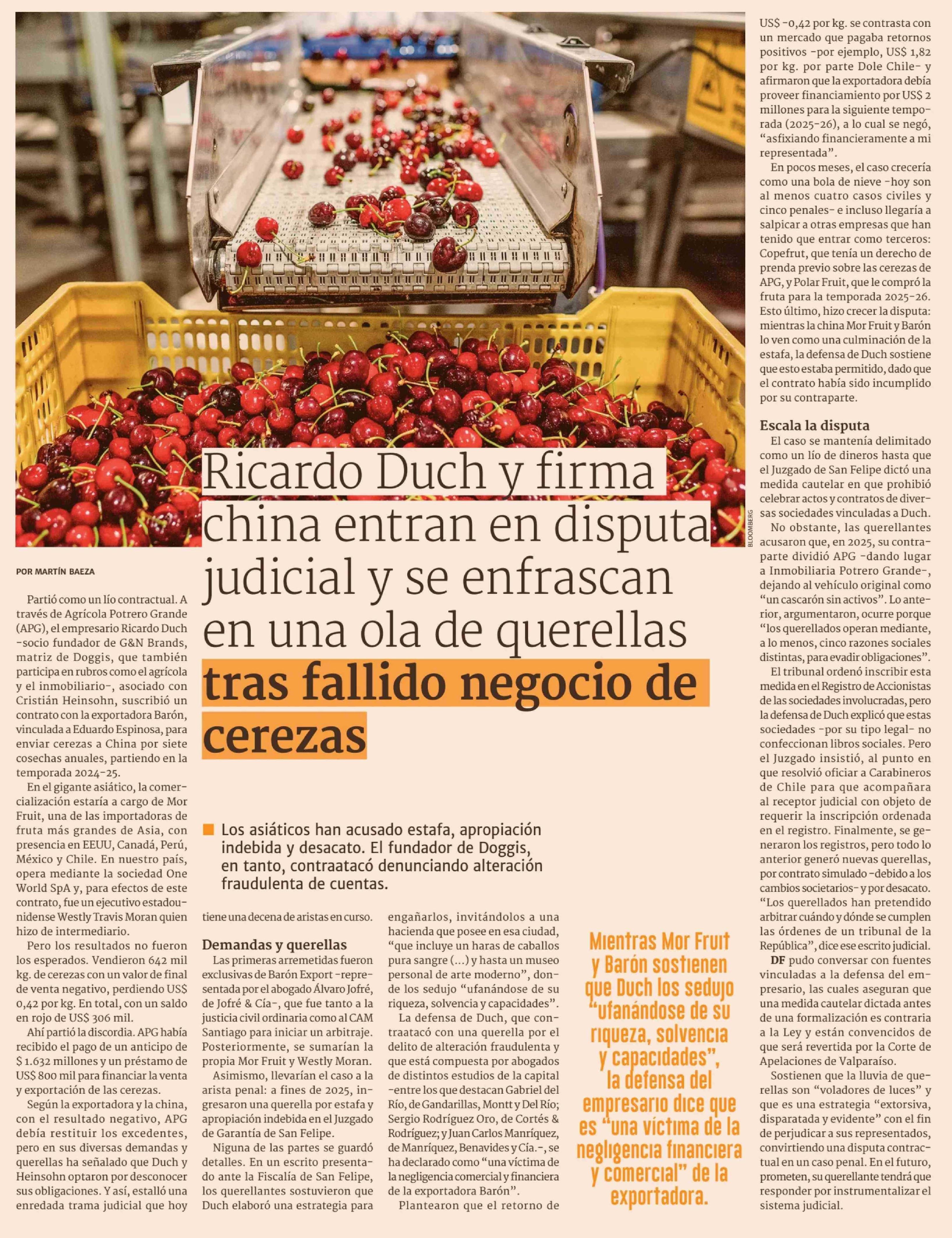 Ricardo Duch y firma china entran en disputa judicial y se enfrascan en una ola de querellas tras fallido negocio de cerezas