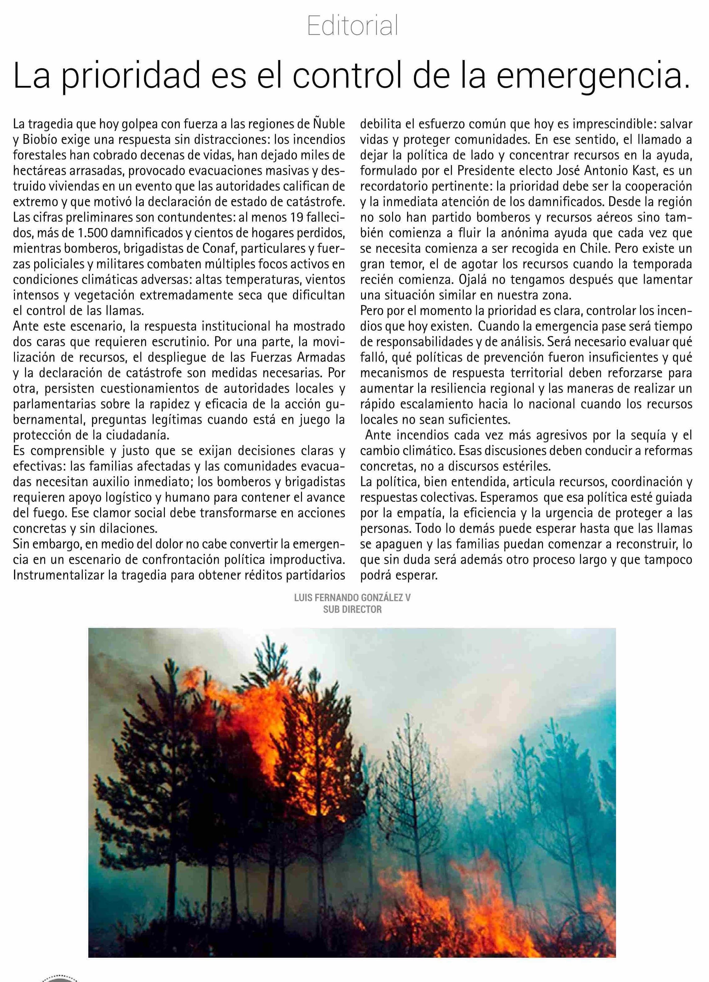 Editorial: La prioridad es el control de la emergencia.