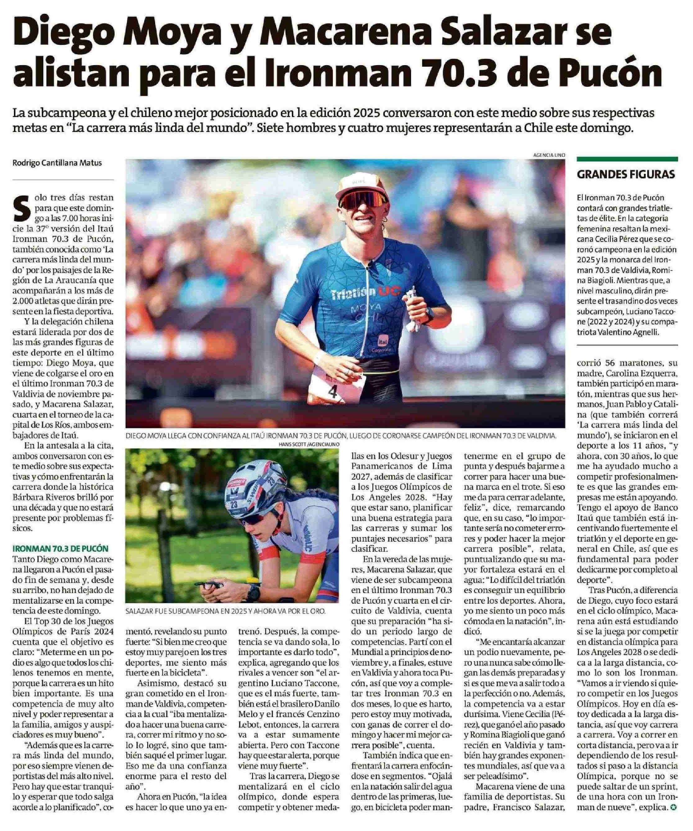 Diego Moya y Macarena Salazar se alistan para el Ironman 70.3 de Pucón