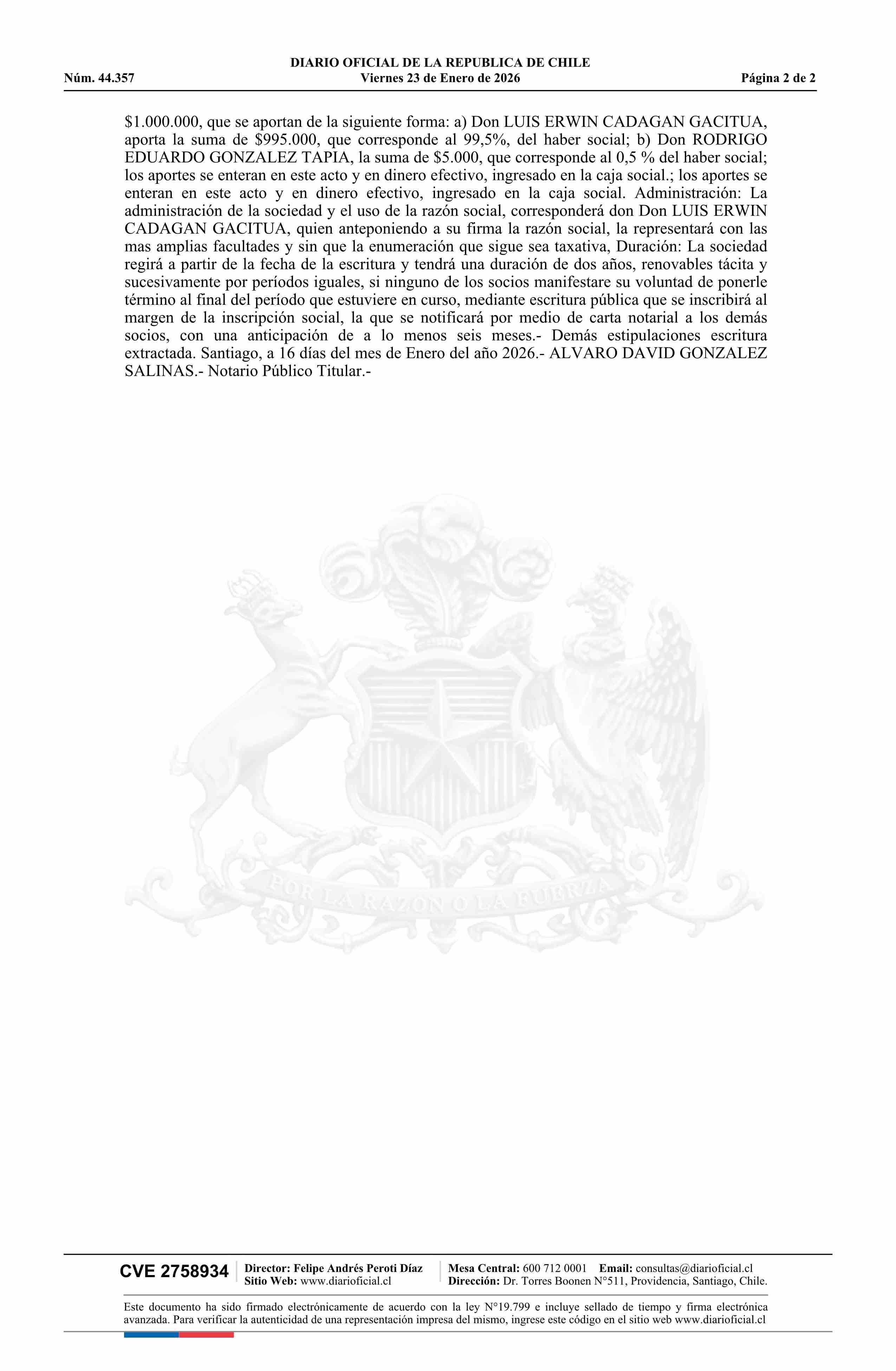 Diario Oficial Edición Electrónica (Diario Oficial de Chile - 5 Empresas Y Cooper)
