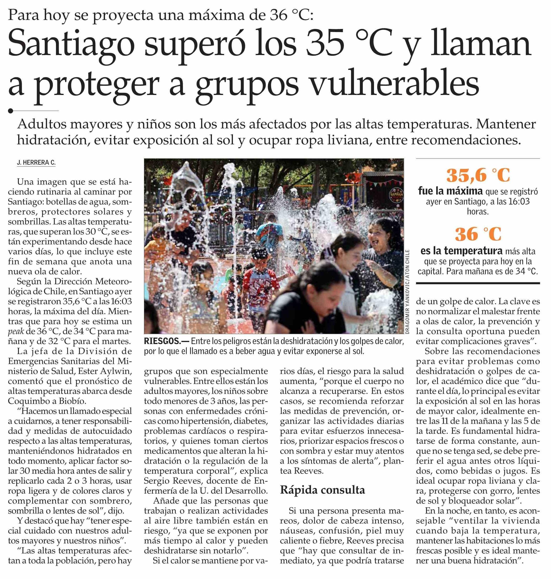Santiago superó los 35 °C y llaman a proteger a grupos vulnerables