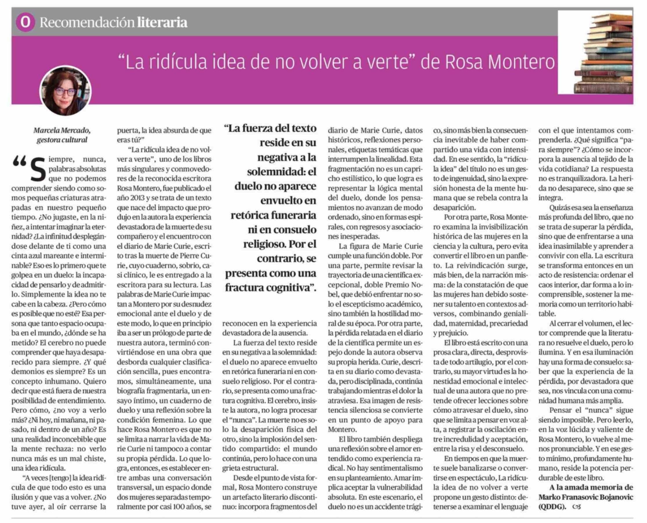 Columnas de Opinión: "La ridícula idea de no volver a verte" de Rosa Montero