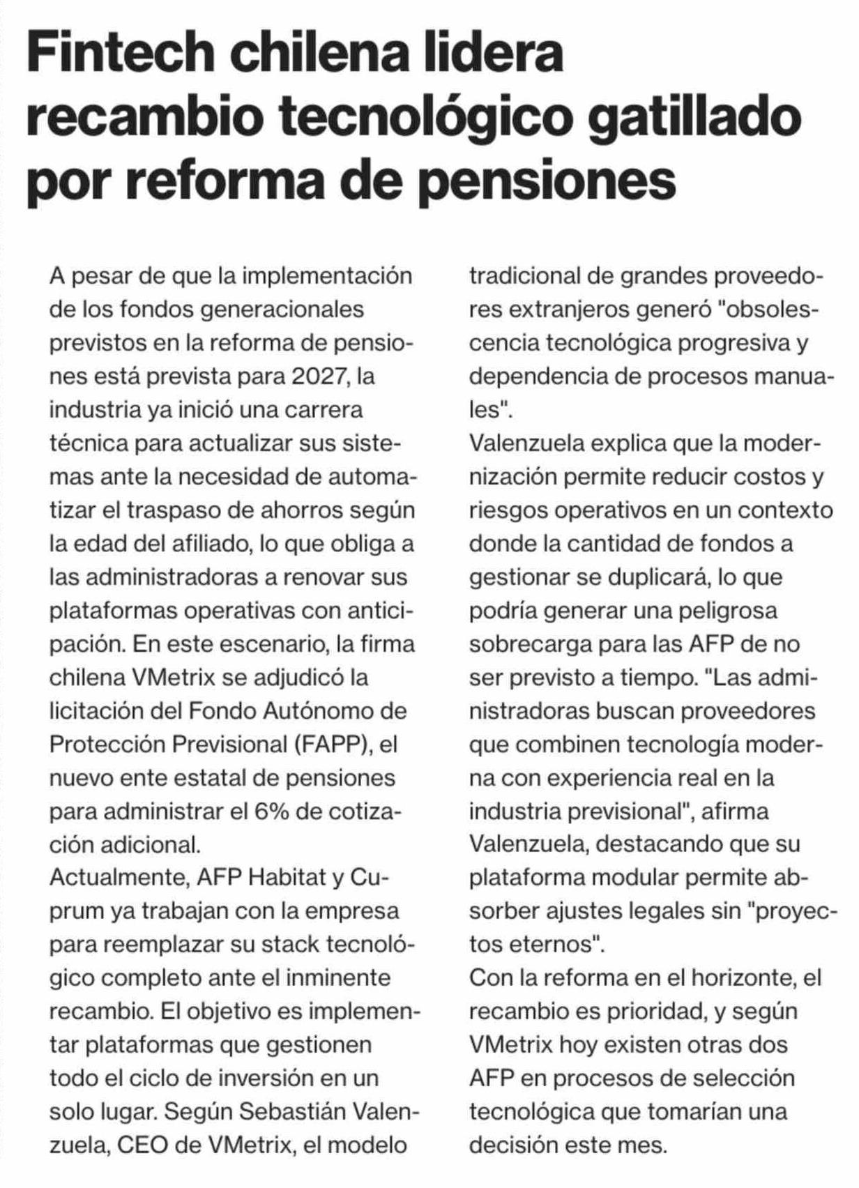 Fintech chilena lidera recambio tecnológico gatillado por reforma de pensiones
