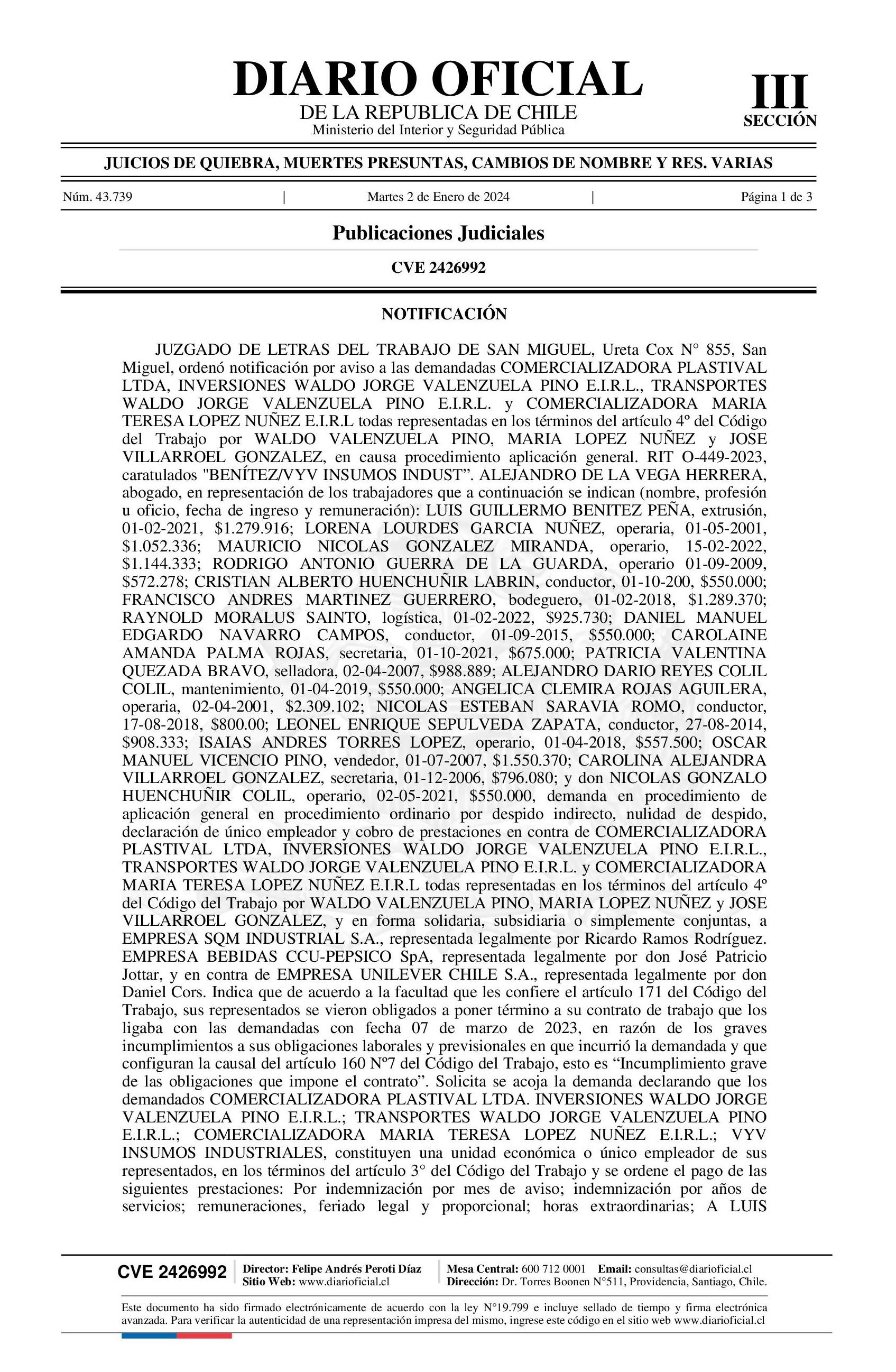 Diario Oficial Edición Electrónica (Diario Oficial de Chile - 3 Public. Judiciales)