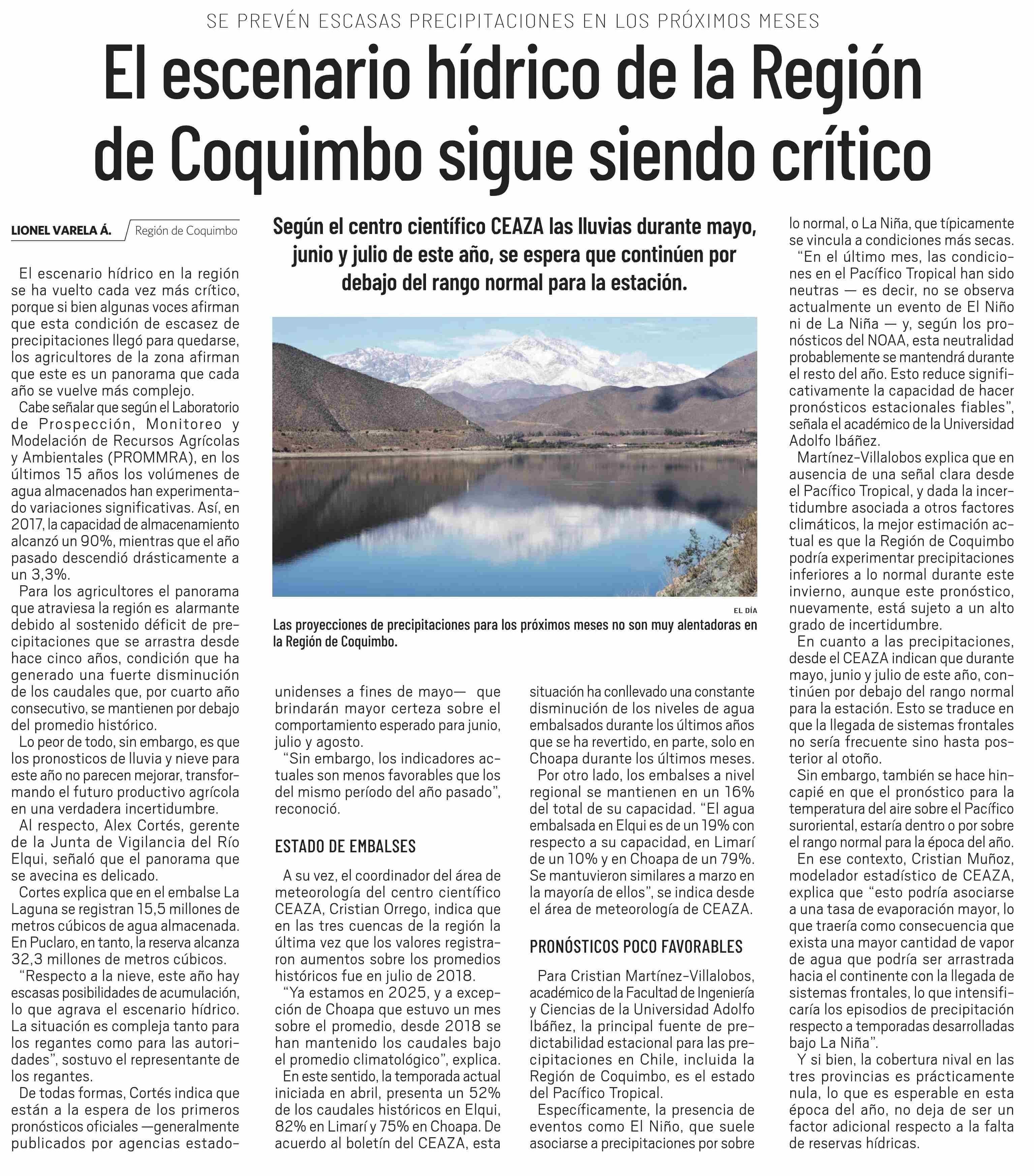 El escenario hídrico de la Región de Coquimbo sigue siendo crítico