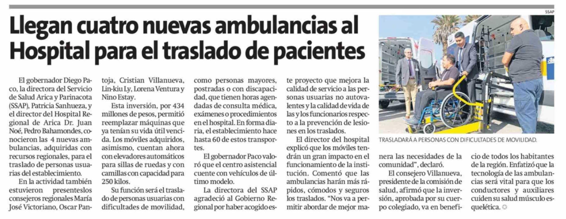 Título: Llegan cuatro nuevas ambulancias al Hospital para el traslado de pacientes