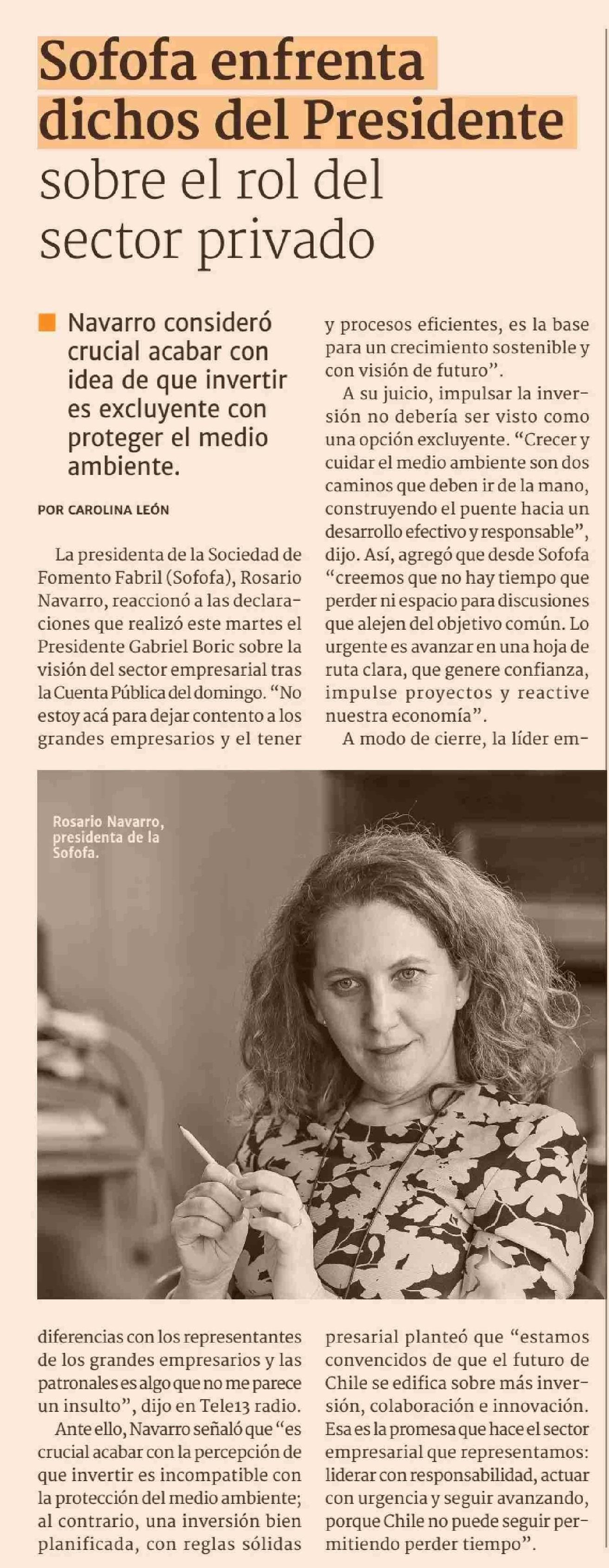 Sofofa enfrenta dichos del Presidente sobre el rol del sector privado