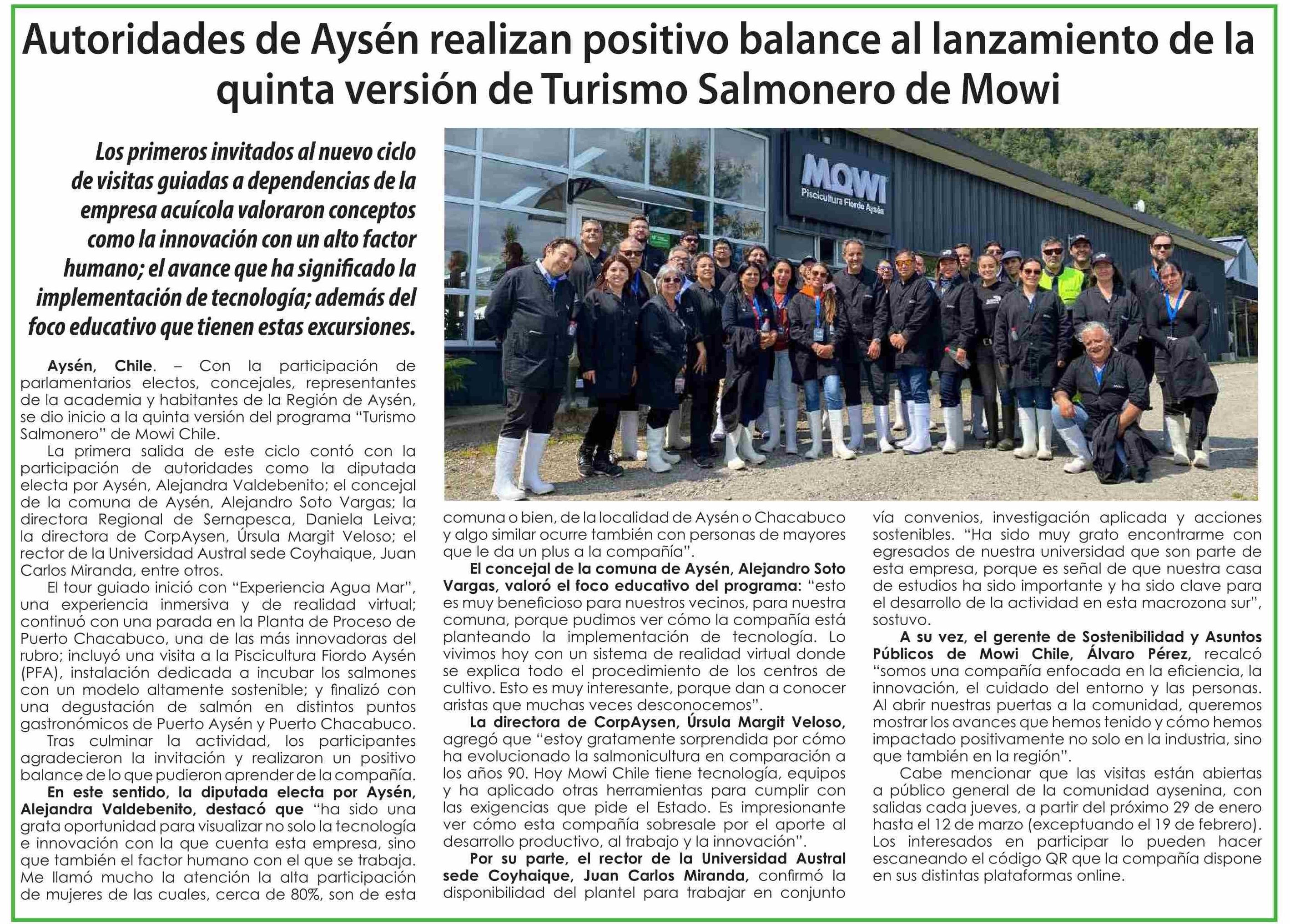 Autoridades de Aysén realizan positivo balance al lanzamiento de la quinta versión de Turismo Salmonero de Mowi