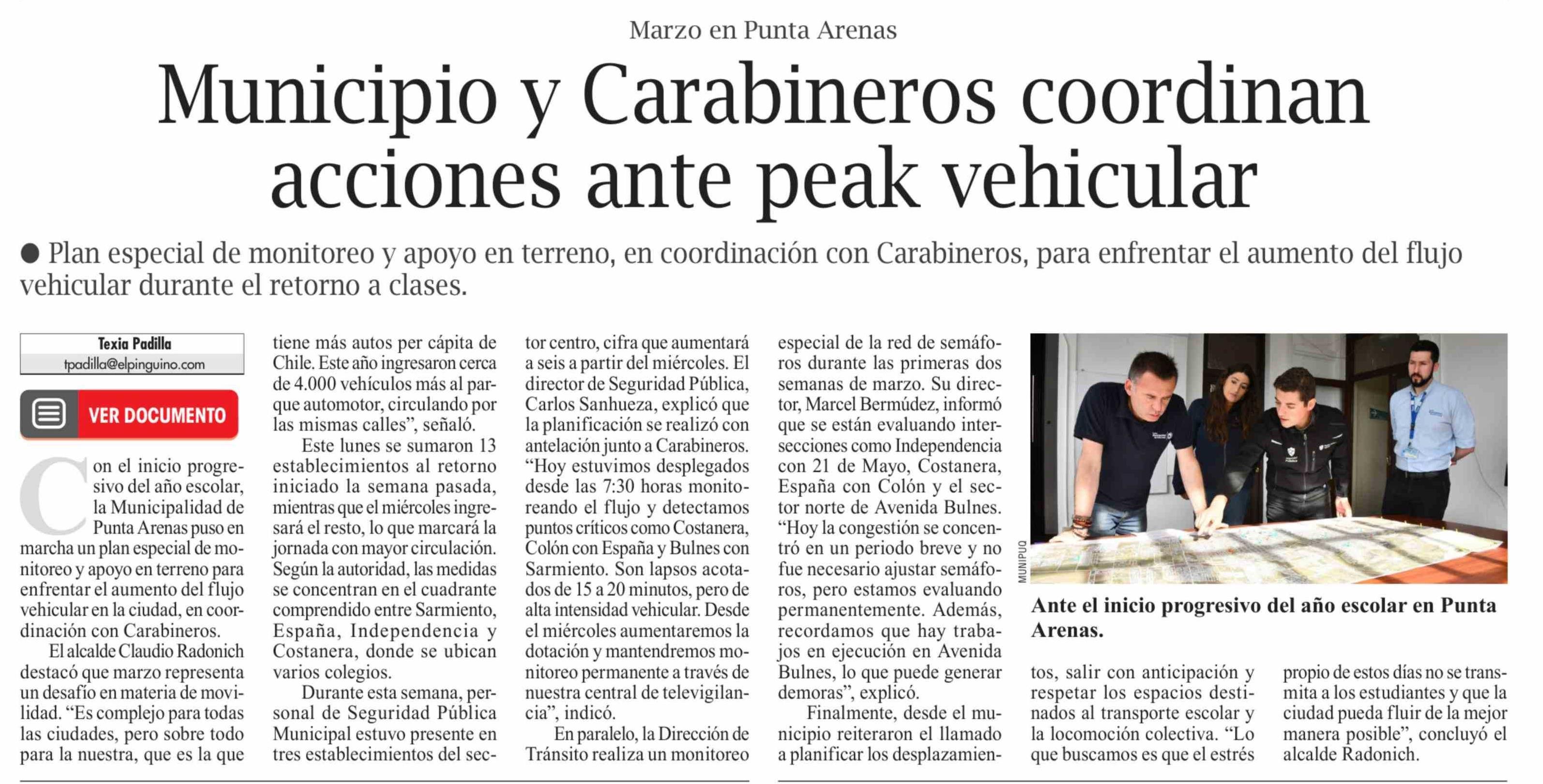 Municipio y Carabineros coordinan acciones ante peak vehicular