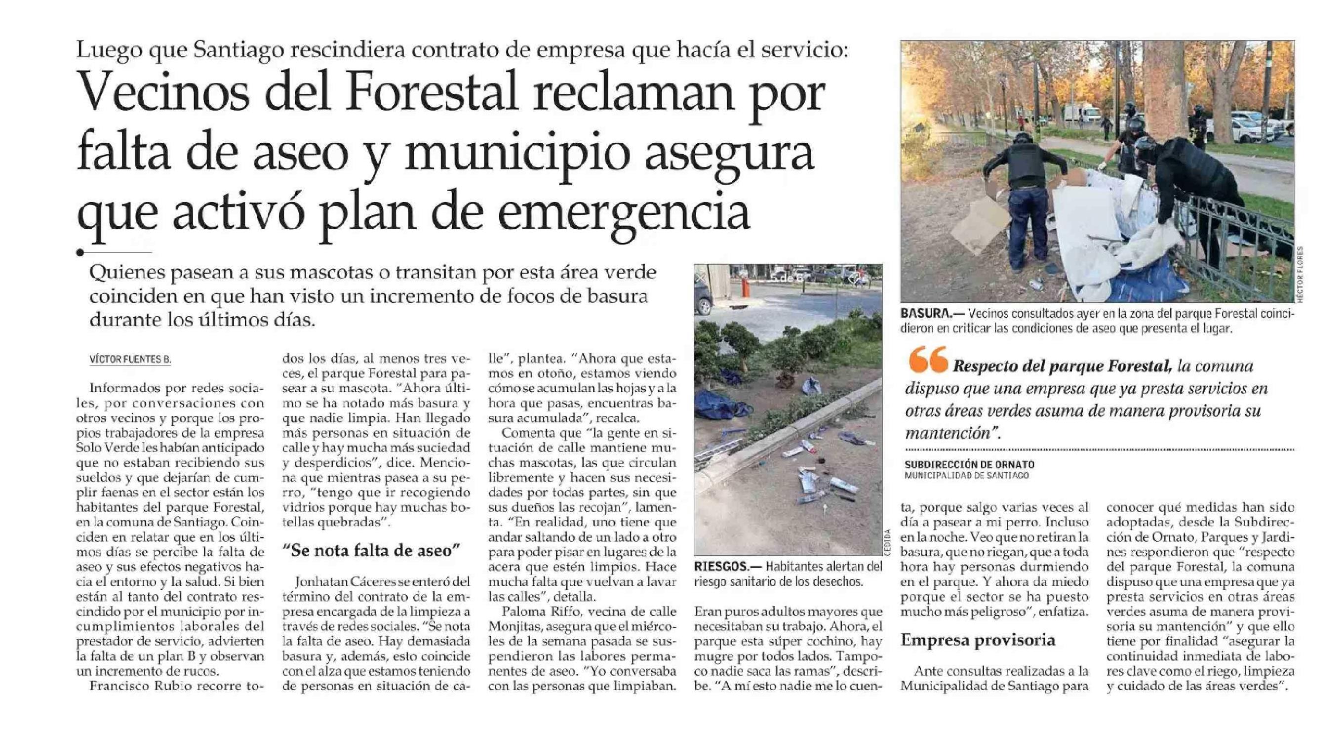 Vecinos del Forestal reclaman por falta de aseo y municipio asegura que activó plan de emergencia