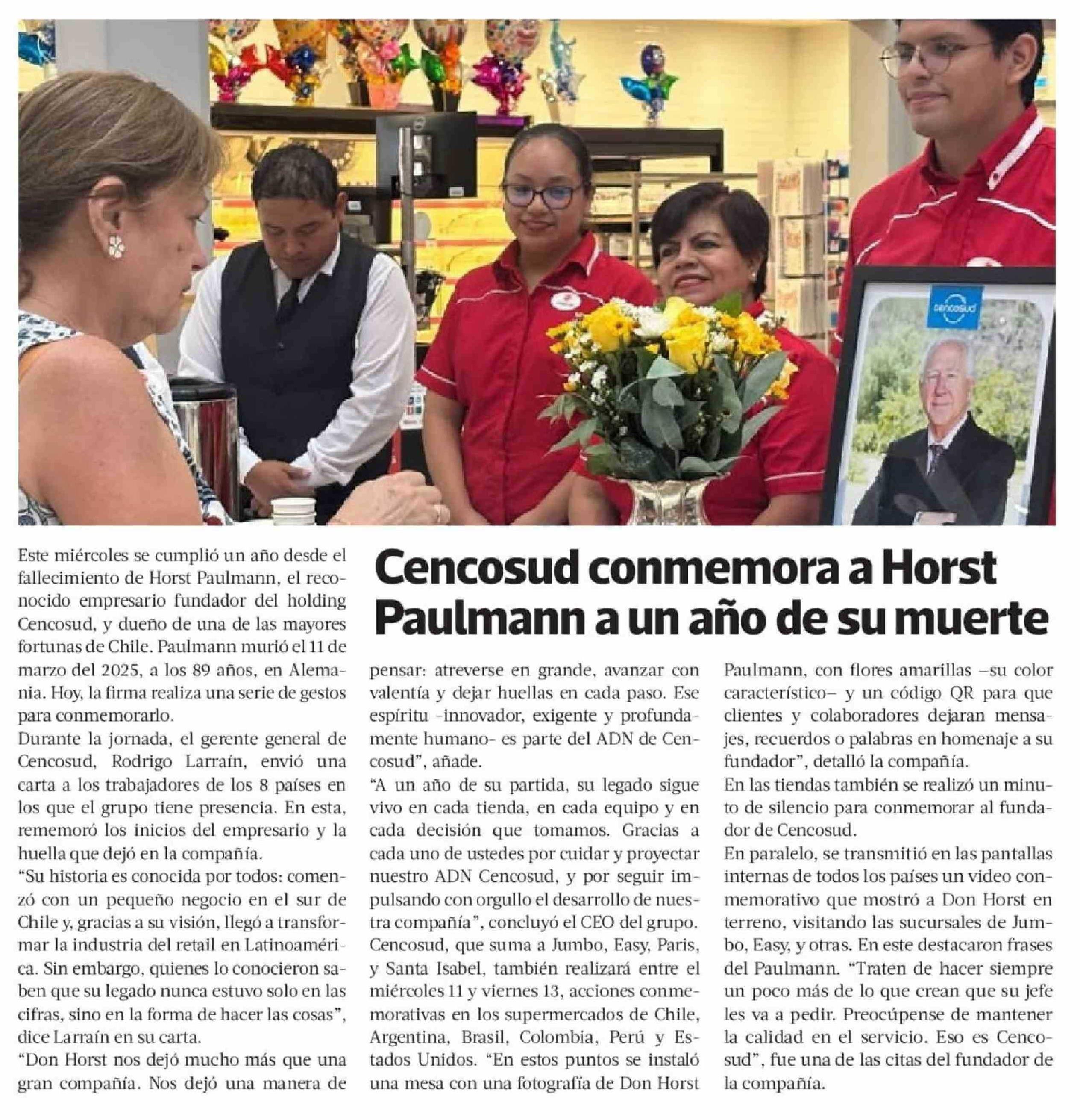 Cencosud conmemora a Horst Paulmann a un año de su muerte