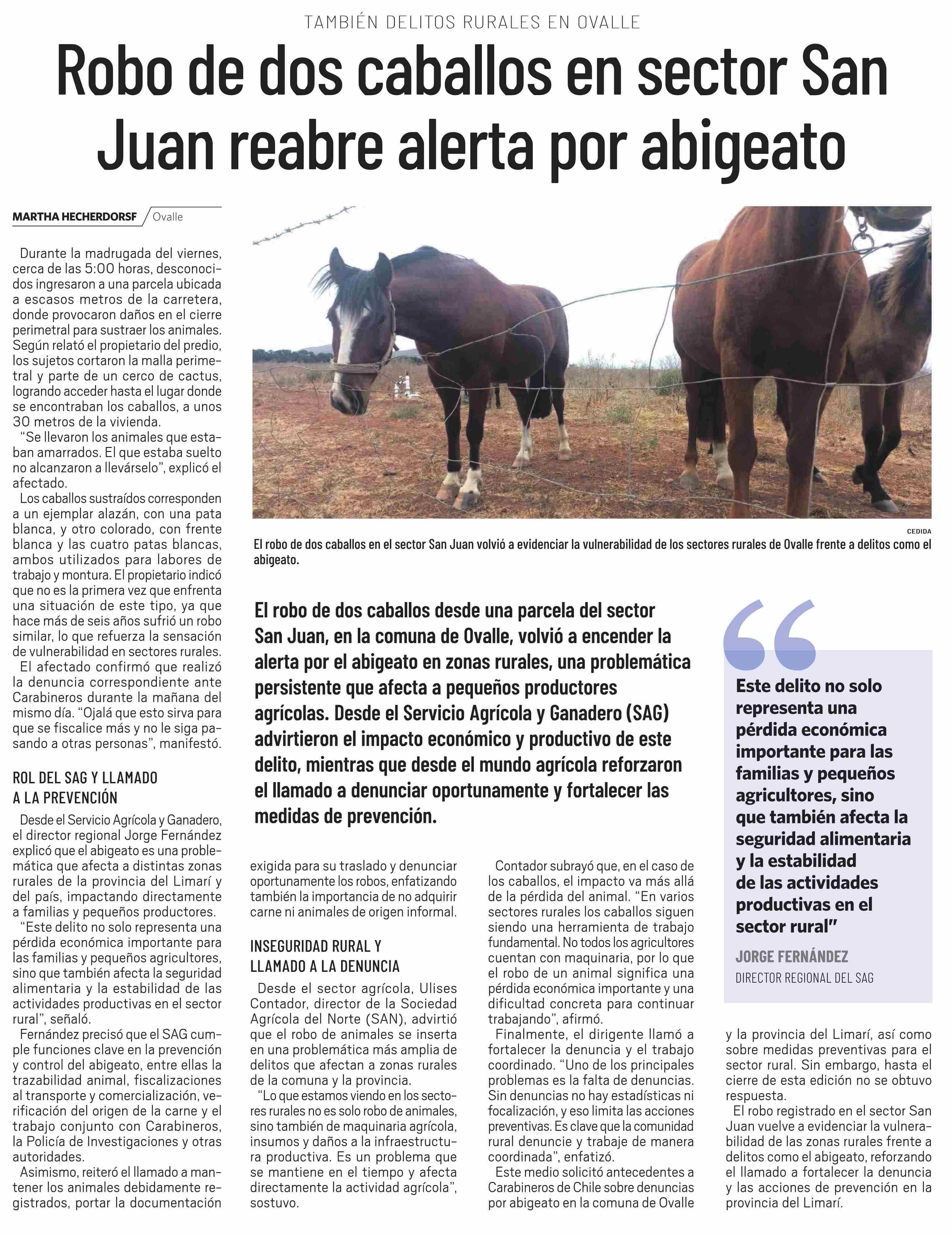 Título: Robo de dos caballos en sector San Juan reabre alerta por abigeato