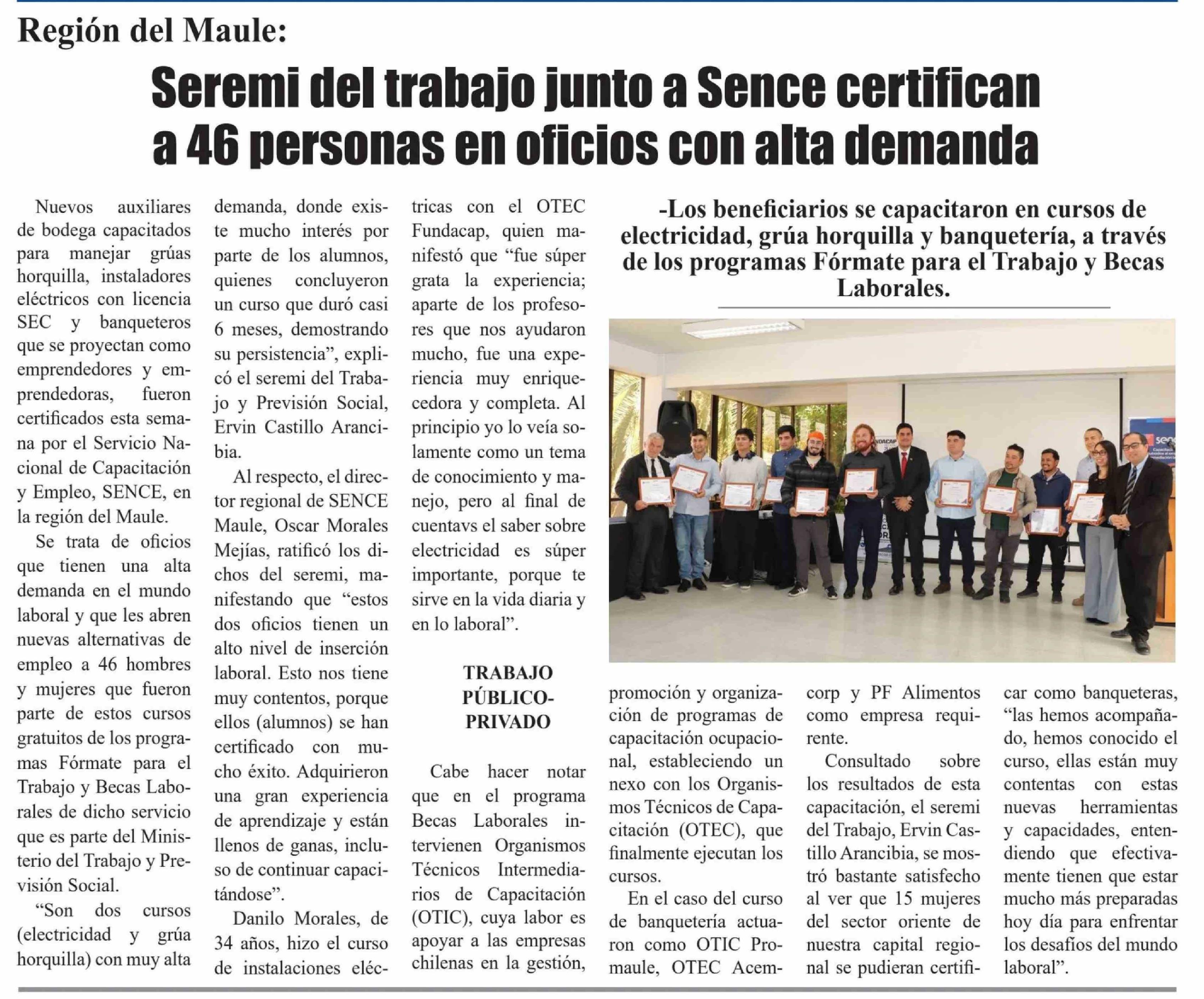 Seremi del trabajo junto a Sence certifican a 46 personas en oficios con alta demanda