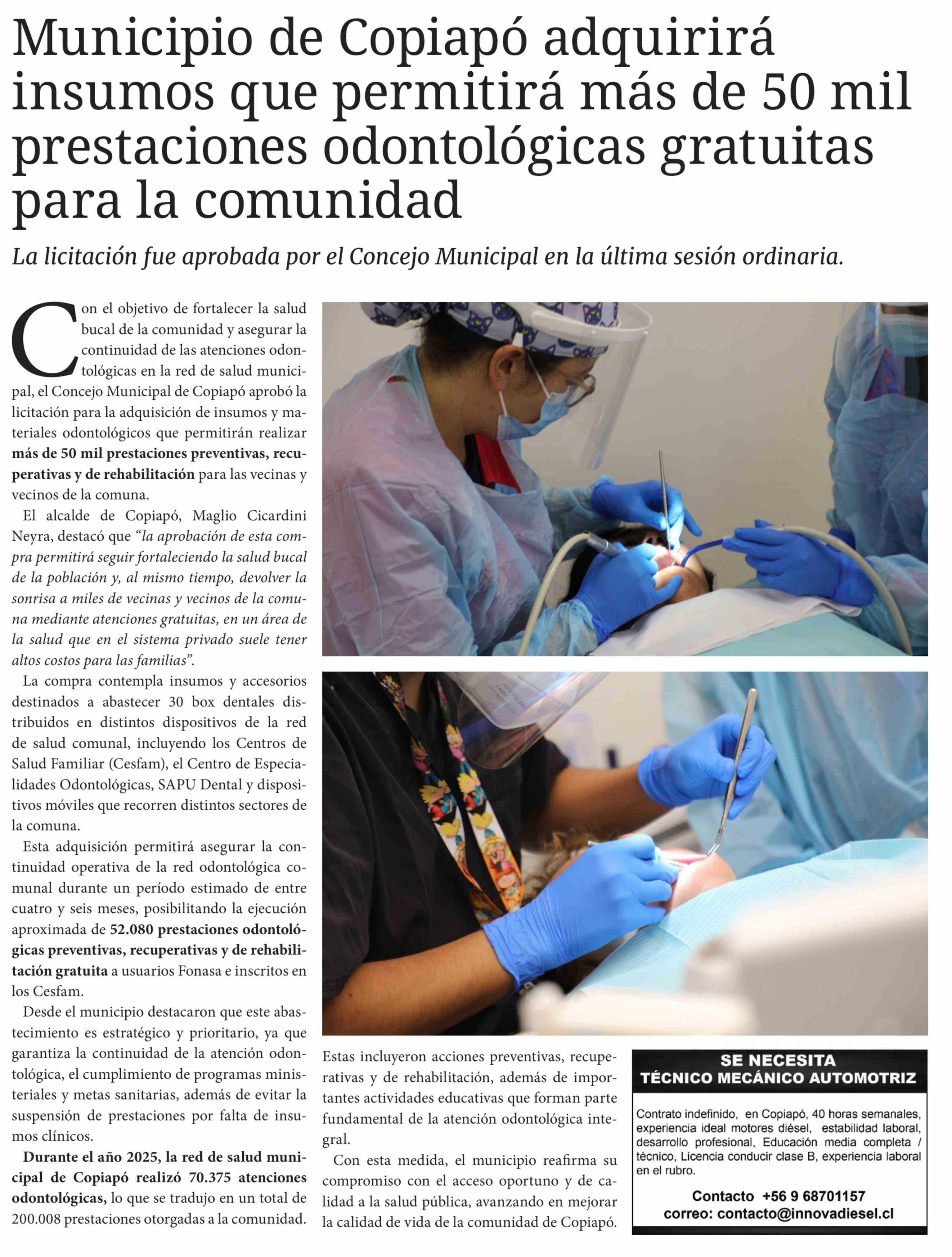 Municipio de Copiapó adquirirá insumos que permitirá más de 50 mil prestaciones odontológicas gratuitas para la comunidad