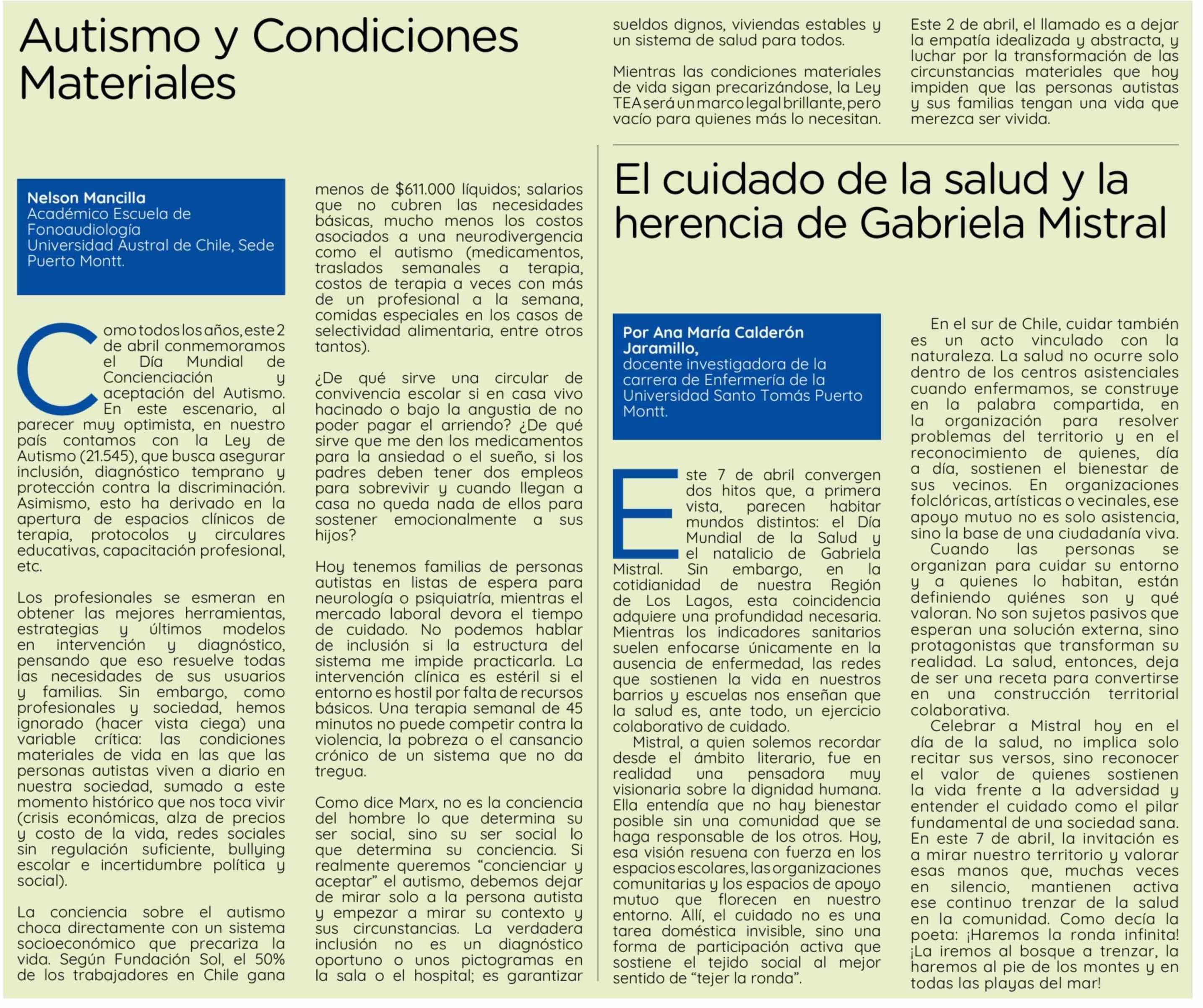 Columnas de Opinión: Autismo y Condiciones Materiales