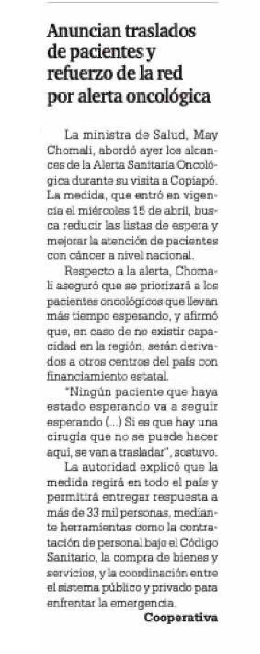 Título: Anuncian traslados de pacientes y refuerzo de la red por alerta oncológica