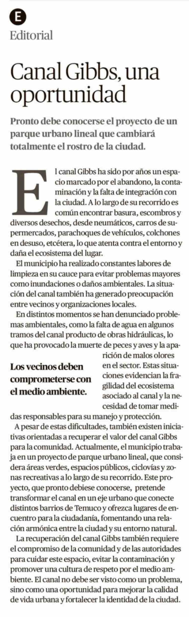 Editorial: Canal Gibbs, una oportunidad