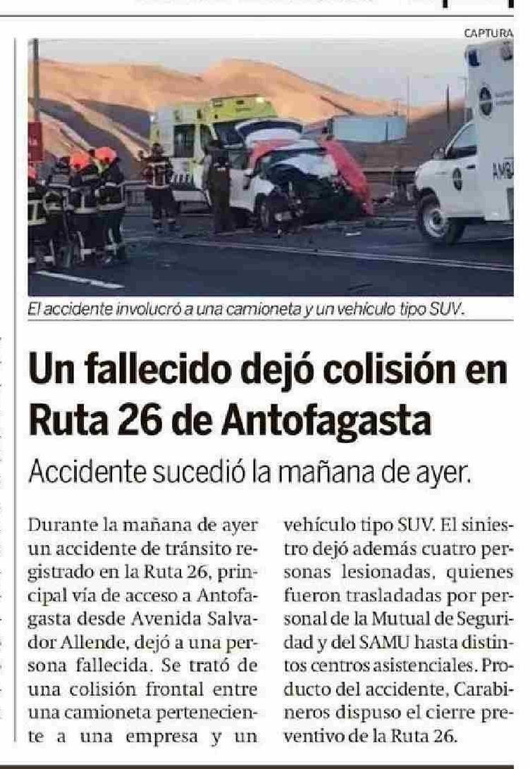 Un fallecido dejó colisión en Ruta 26 de Antofagasta