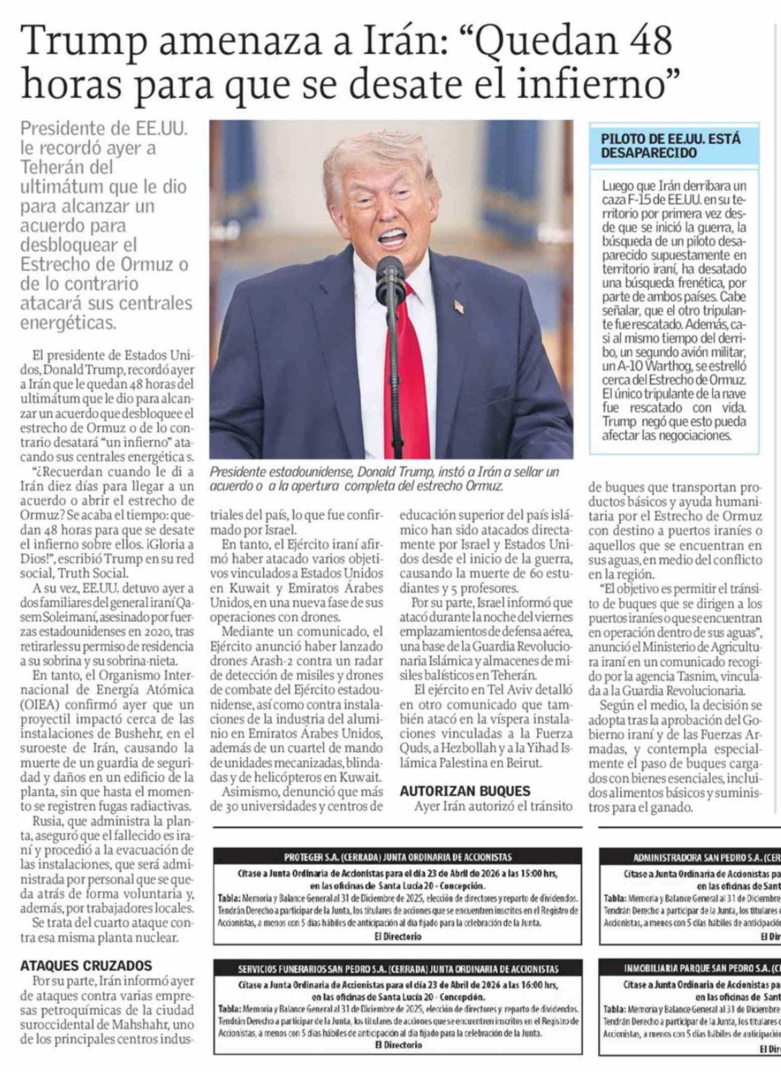 Trump amenaza a Irán: "Quedan 48 horas para que se desate el infierno"