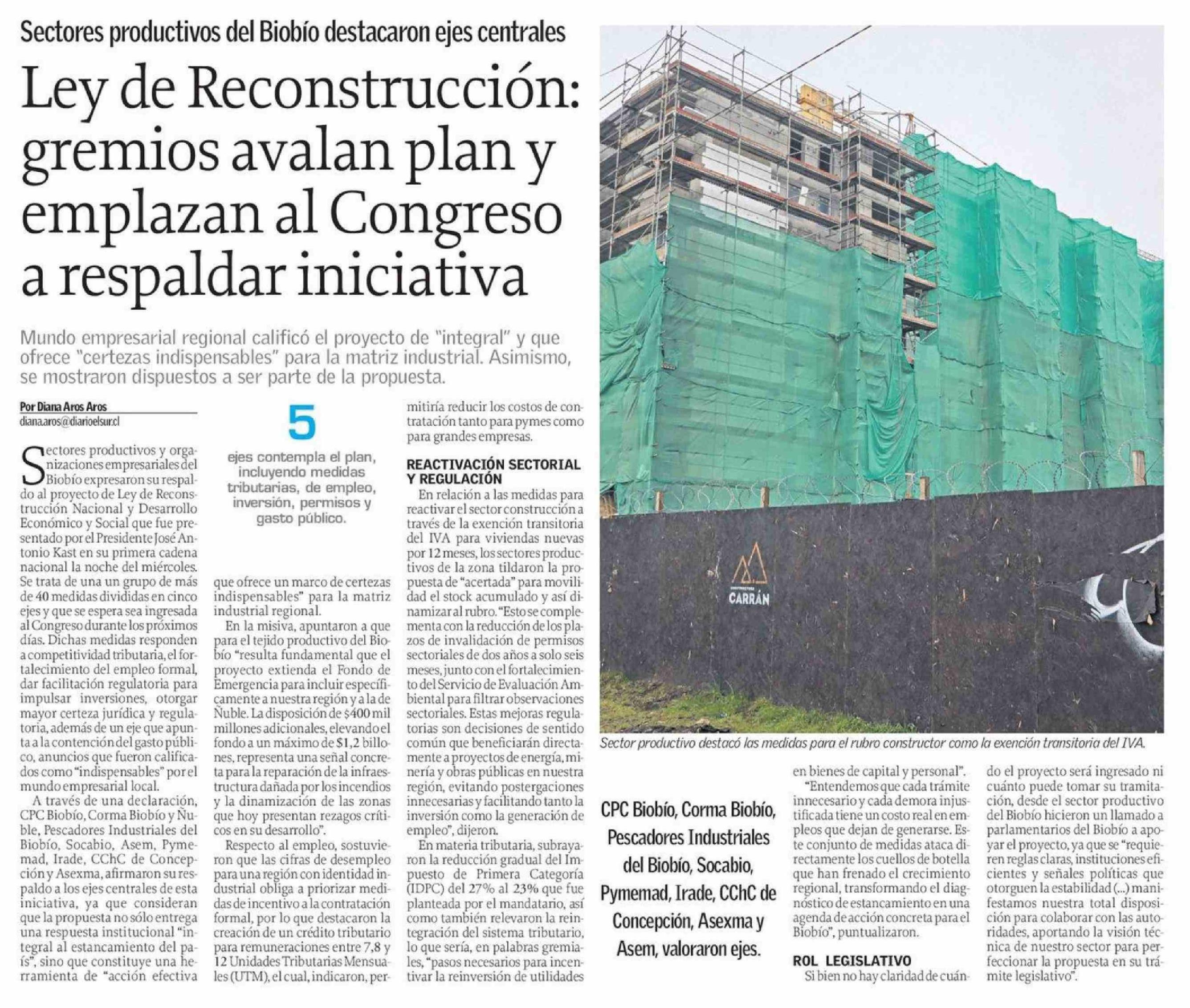 Ley de Reconstrucción: gremios avalan plan y emplazan al Congreso a respaldar iniciativa