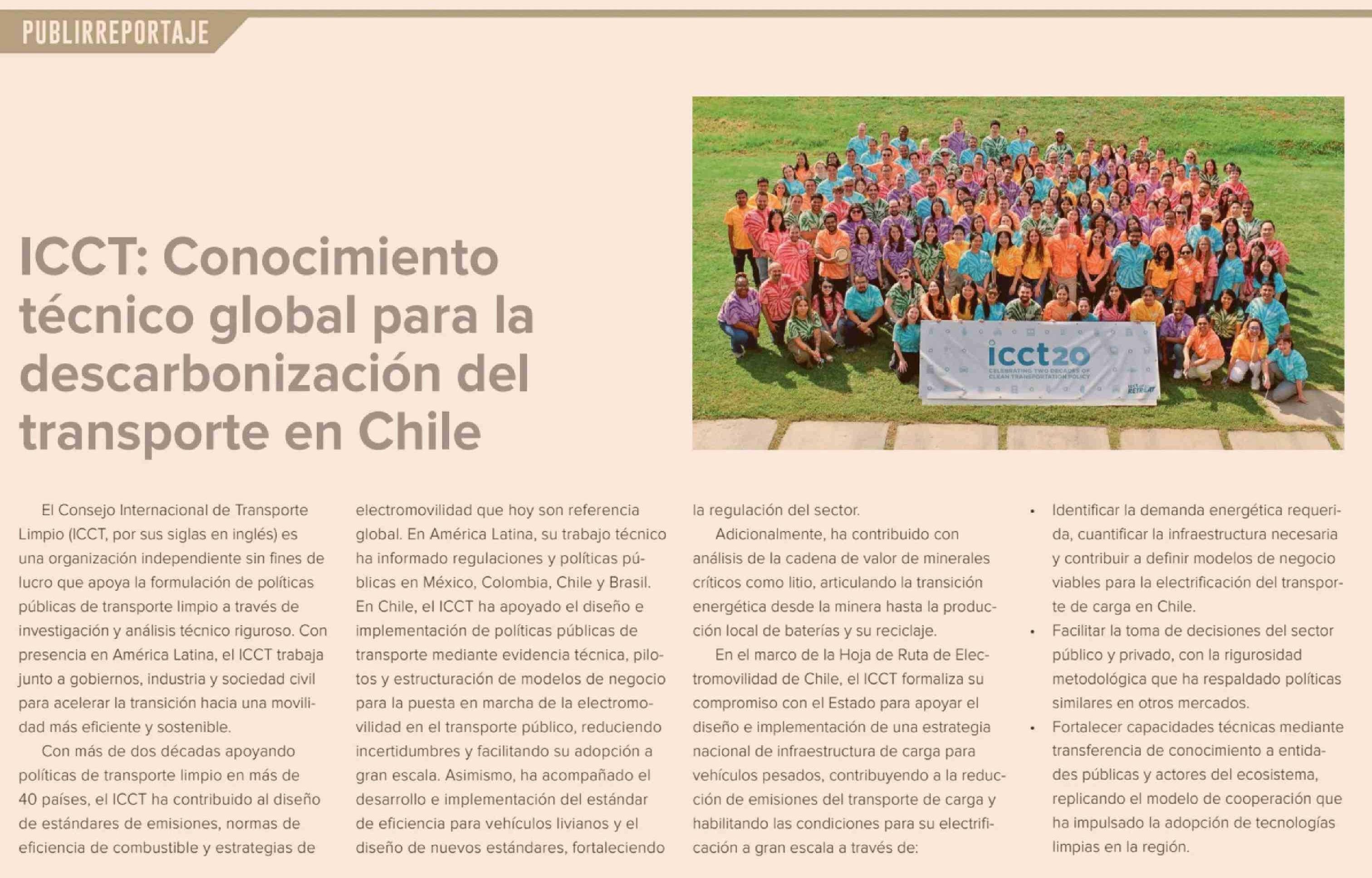 ICCT: Conocimiento técnico global para la descarbonización del transporte en Chile