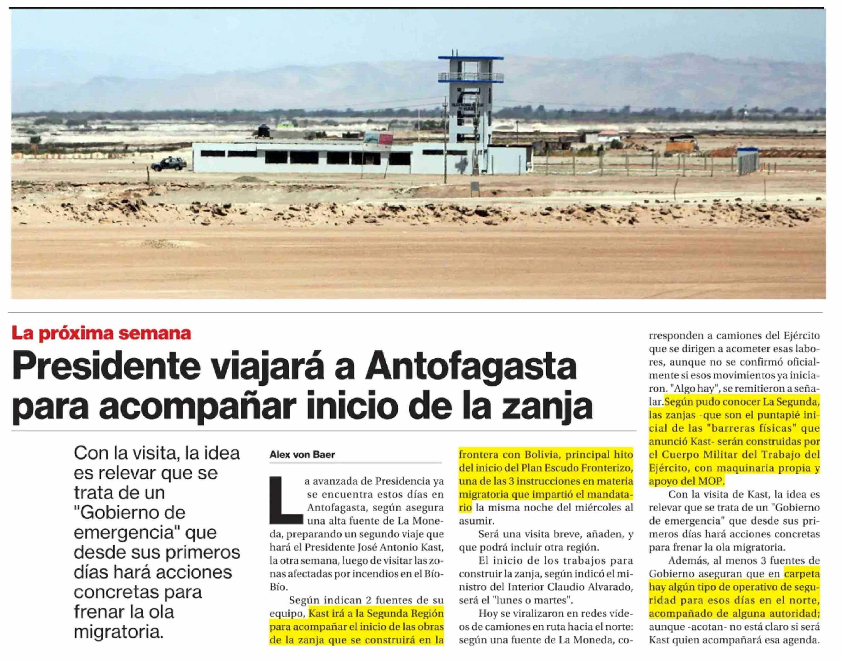 Presidente viajará a Antofagasta para acompañar inicio de la zanja