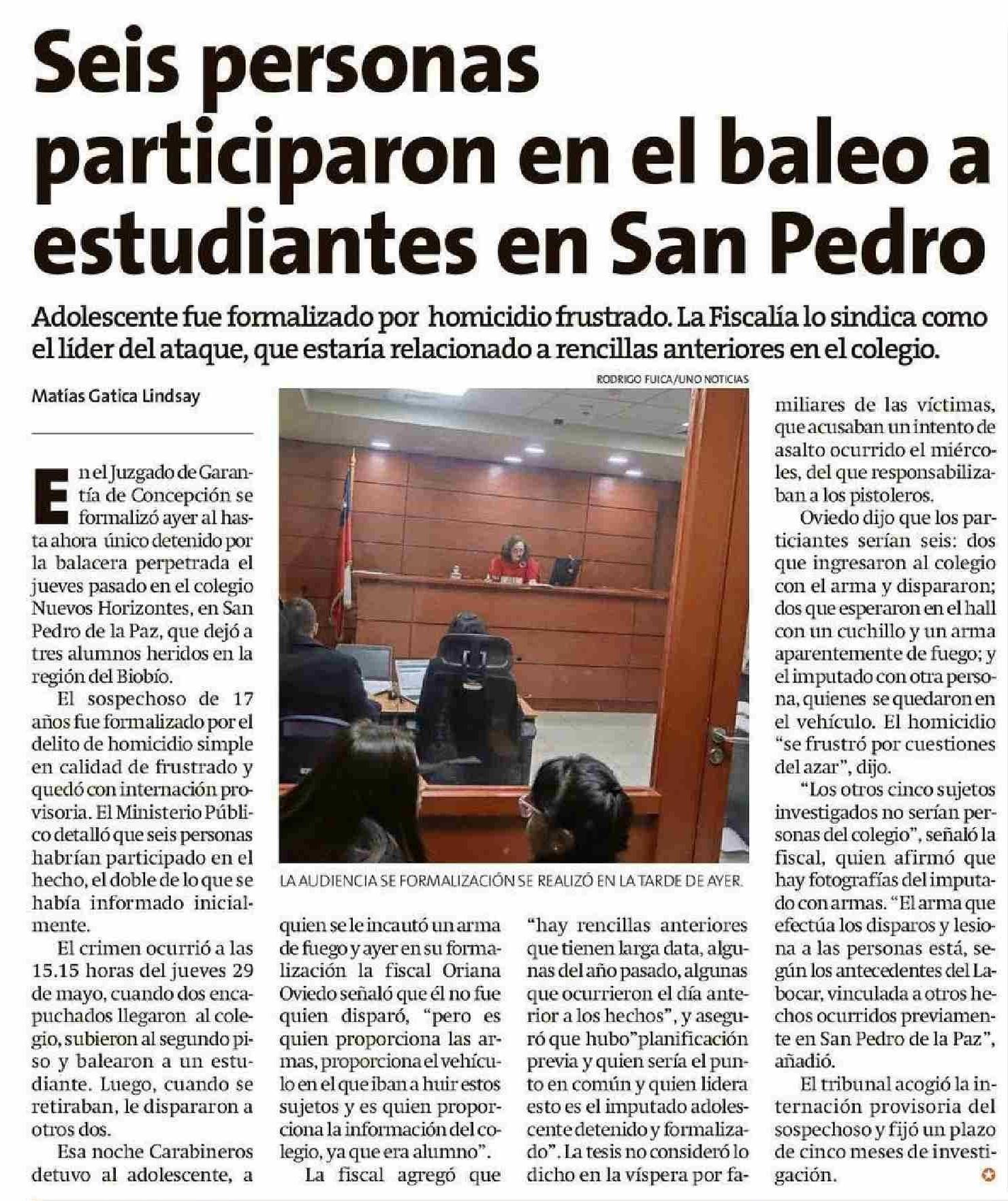 Seis personas participaron en el baleo a estudiantes en San Pedro