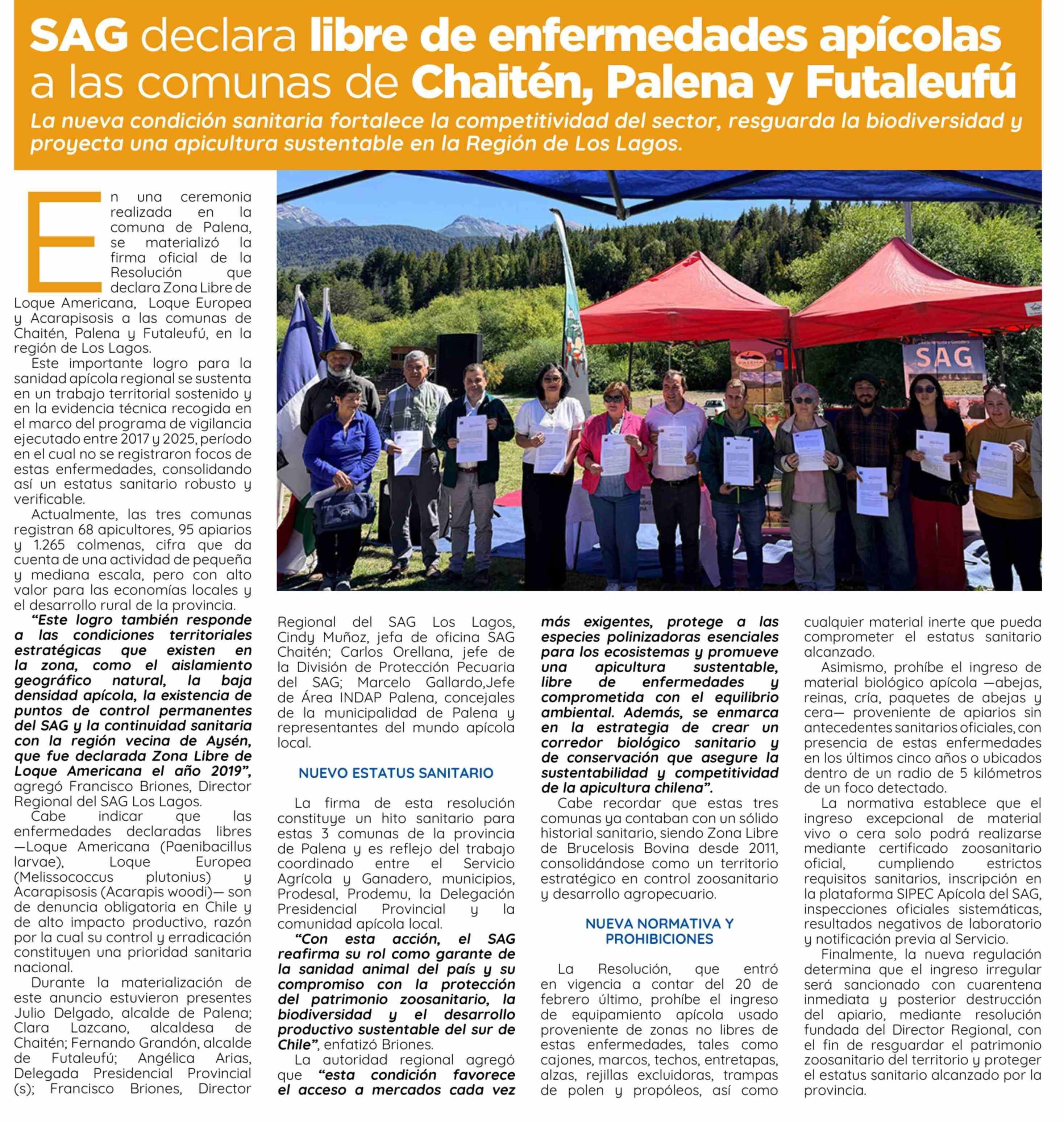 SAG declara libre de enfermedades apícolas a las comunas de Chaitén, Palena y Futaleufú