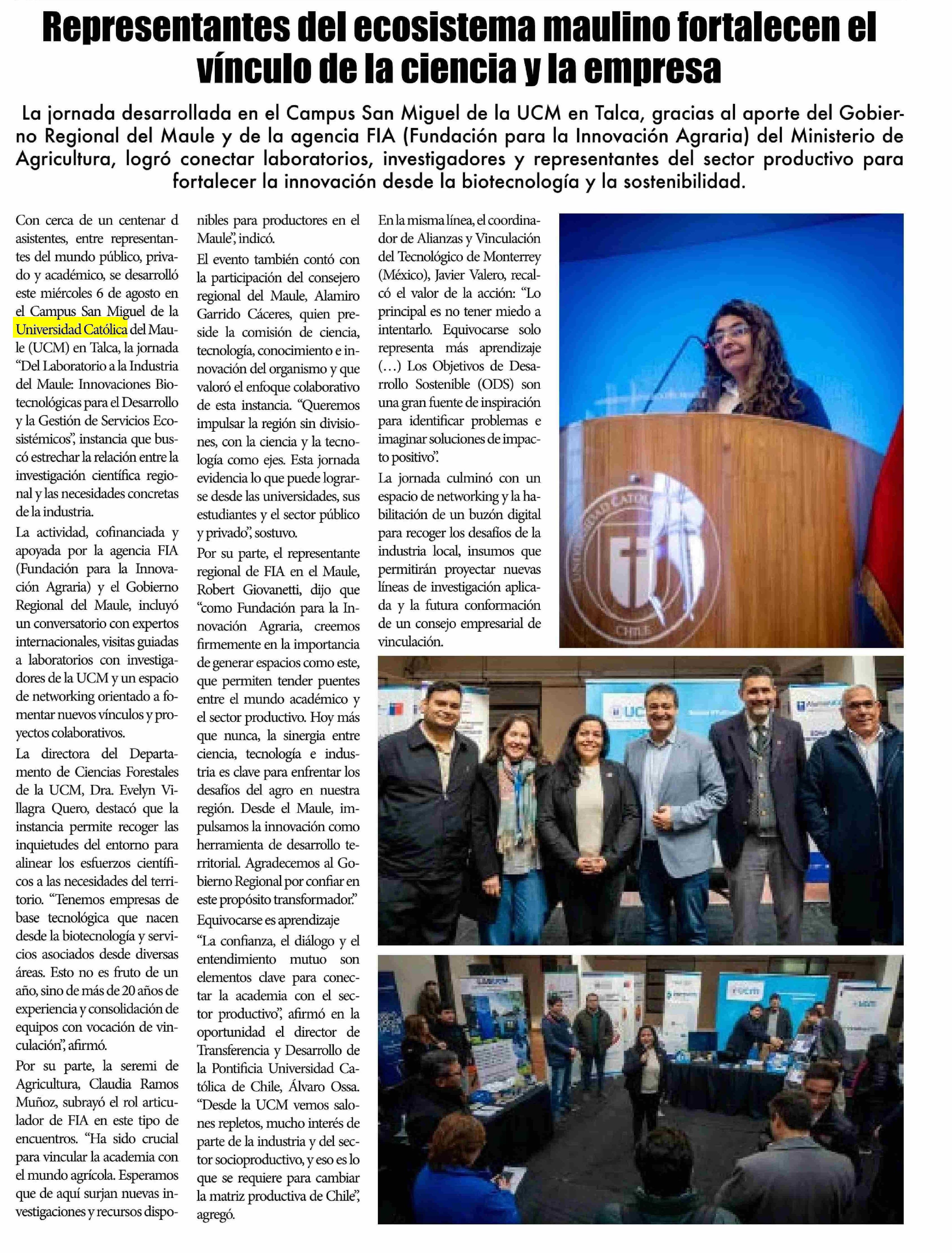 Representantes del ecosistema maulino fortalecen el vínculo de la ciencia y la empresa