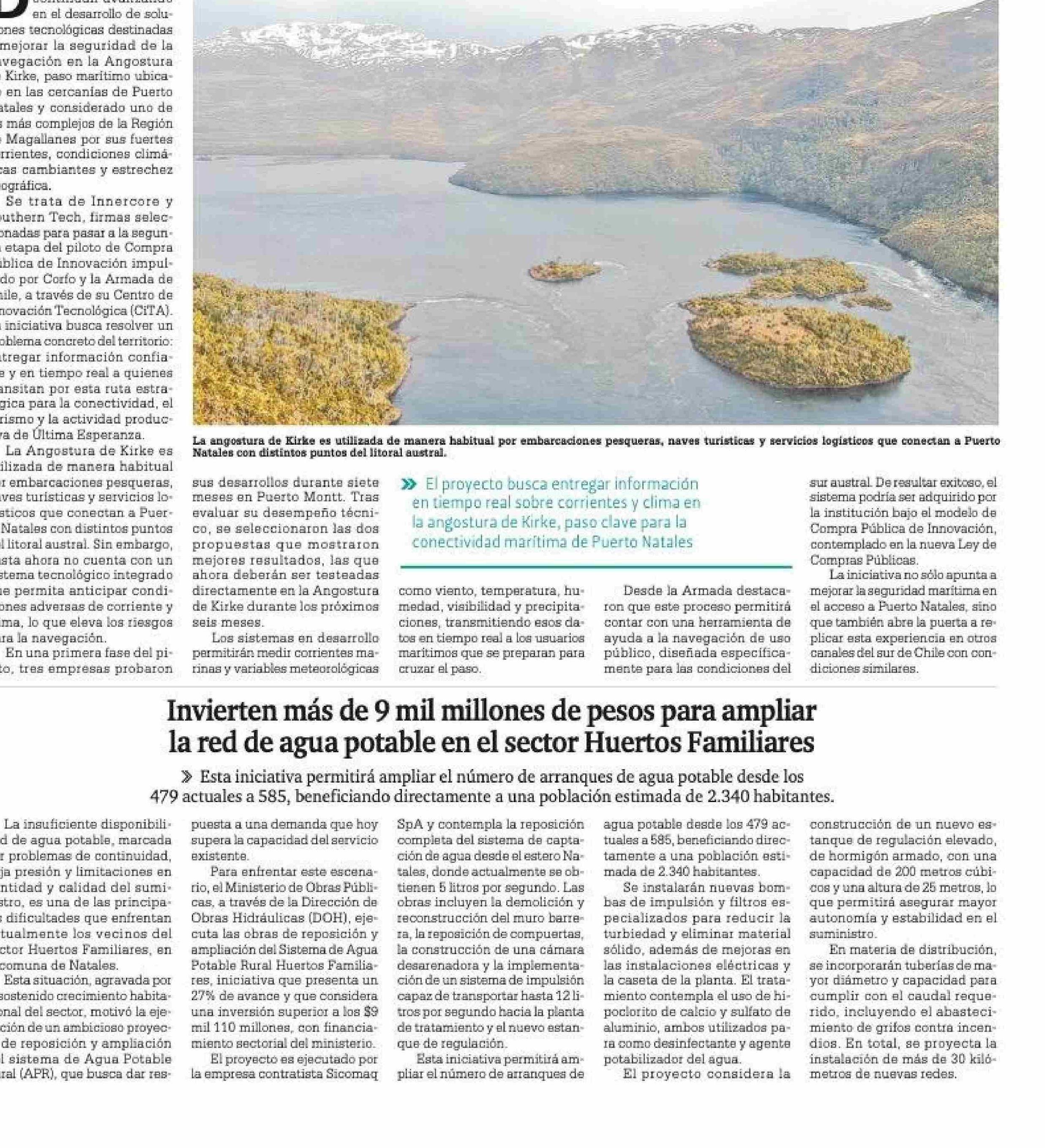 Innercore y Southern Tech avanzan en licitación para navegar con mayor seguridad en angostura de Kirke