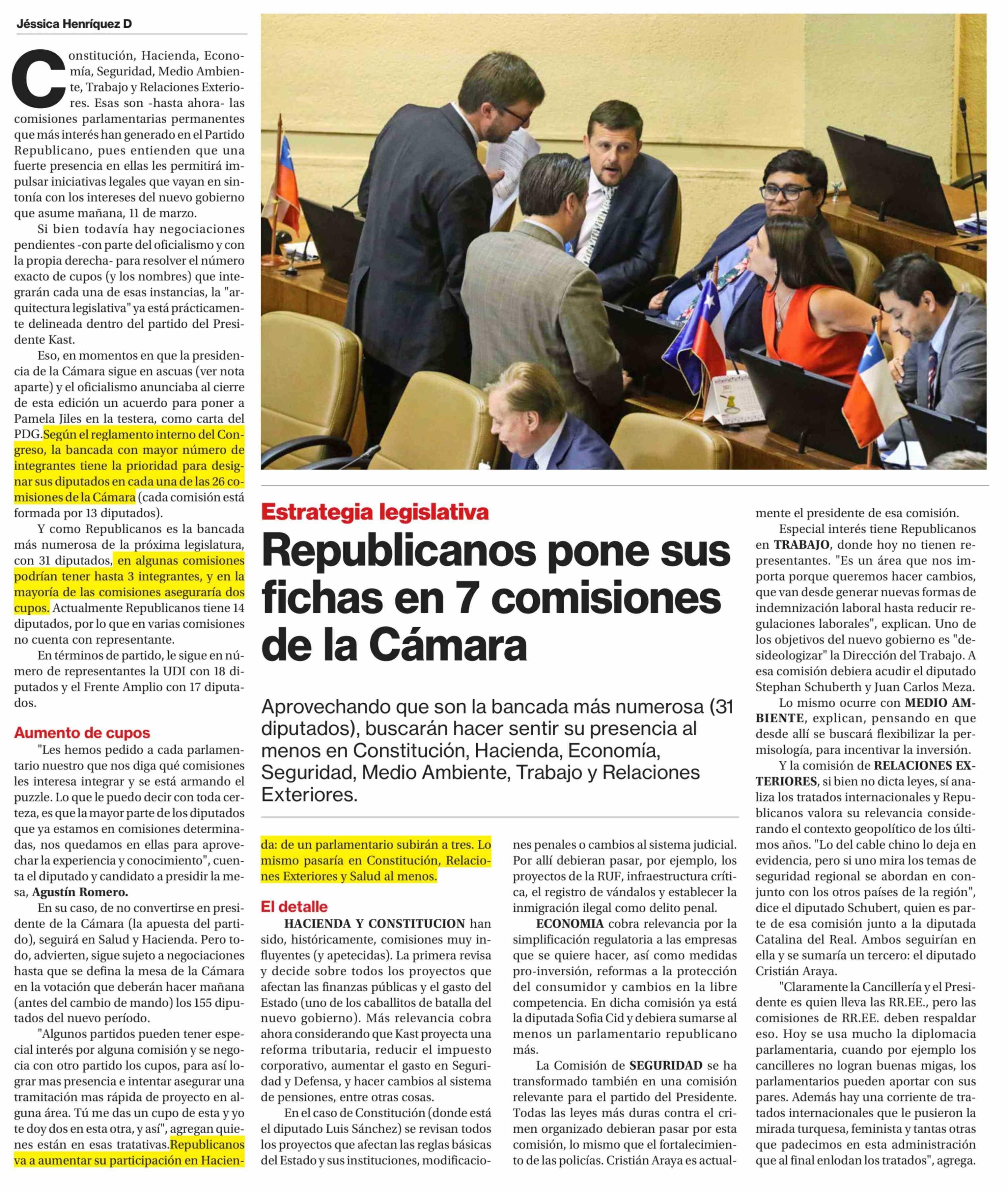 Republicanos pone sus fichas en 7 comisiones de la Cámara