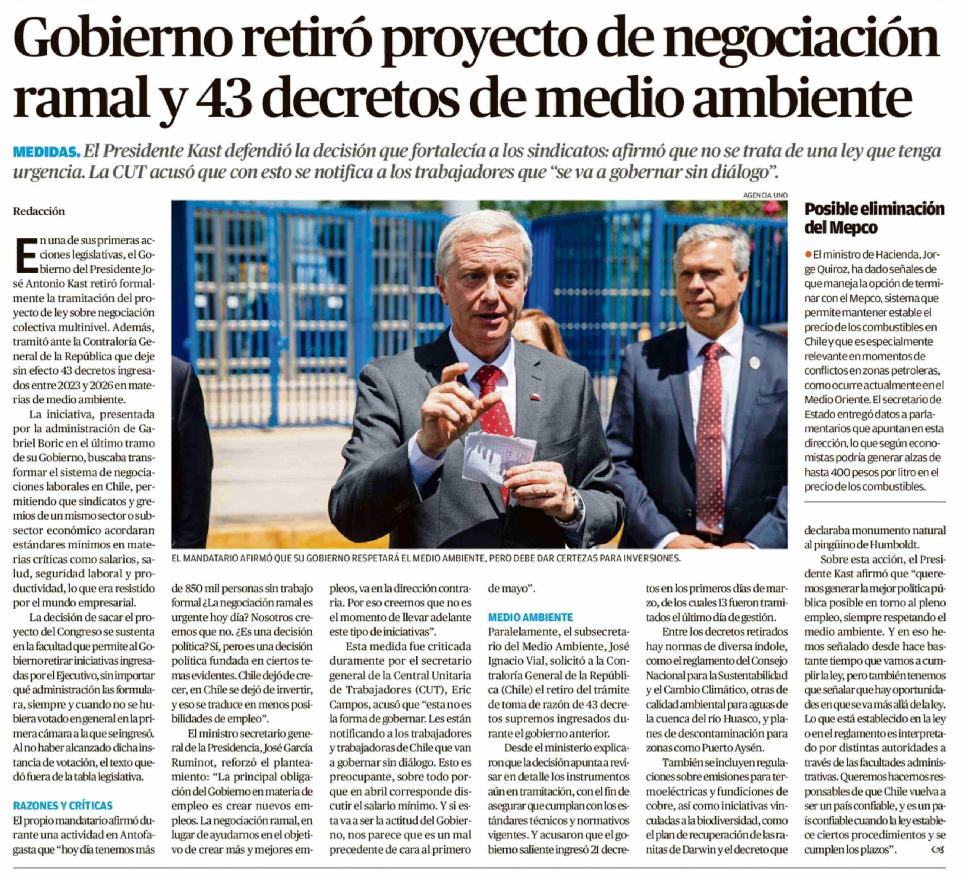 Gobierno retiró proyecto de negociación ramal y 43 decretos de medio ambiente