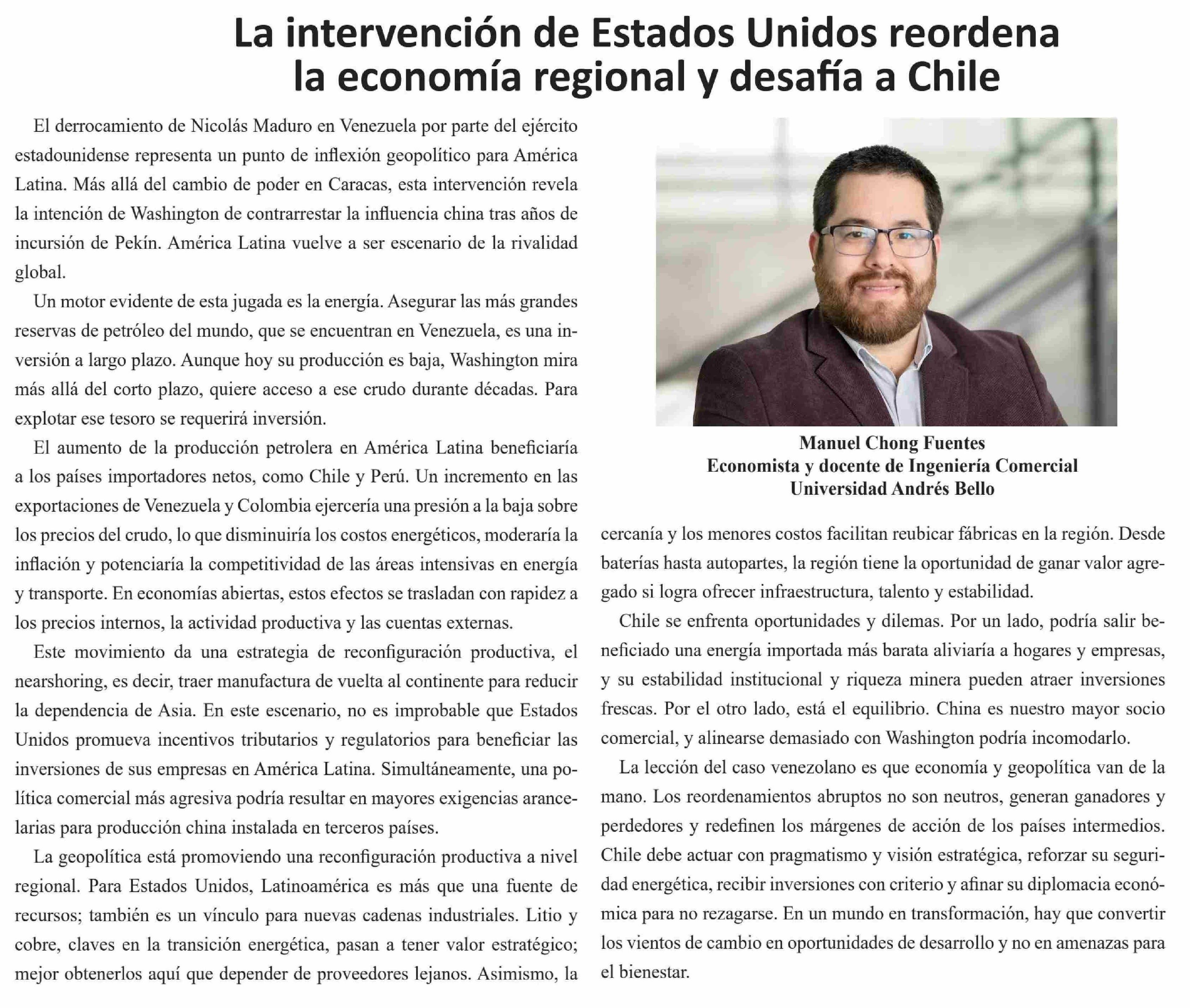 Columnas de Opinión: La intervención de Estados Unidos reordena la economía regional y desafía a Chile
