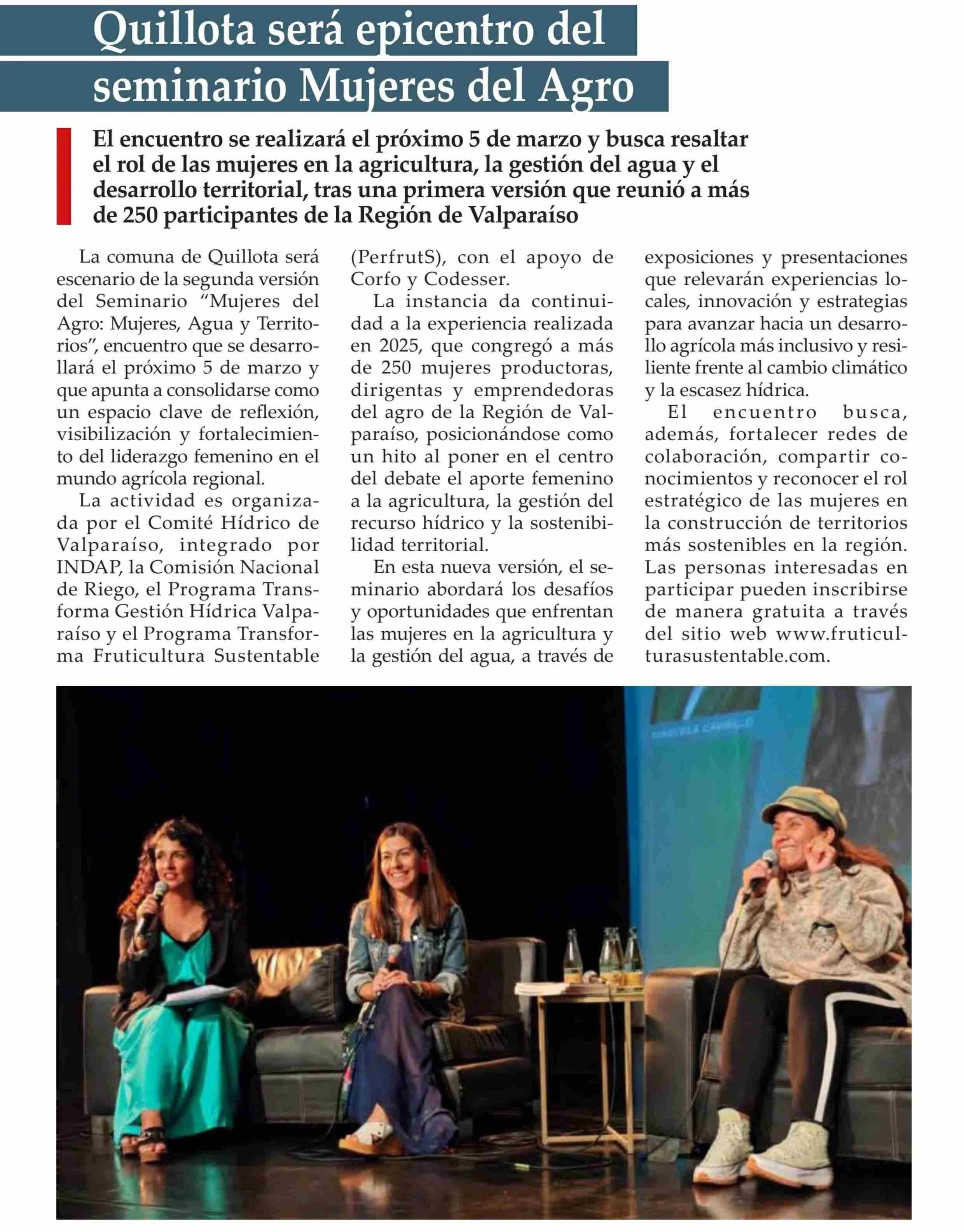 Quillota será epicentro del seminario Mujeres del Agro