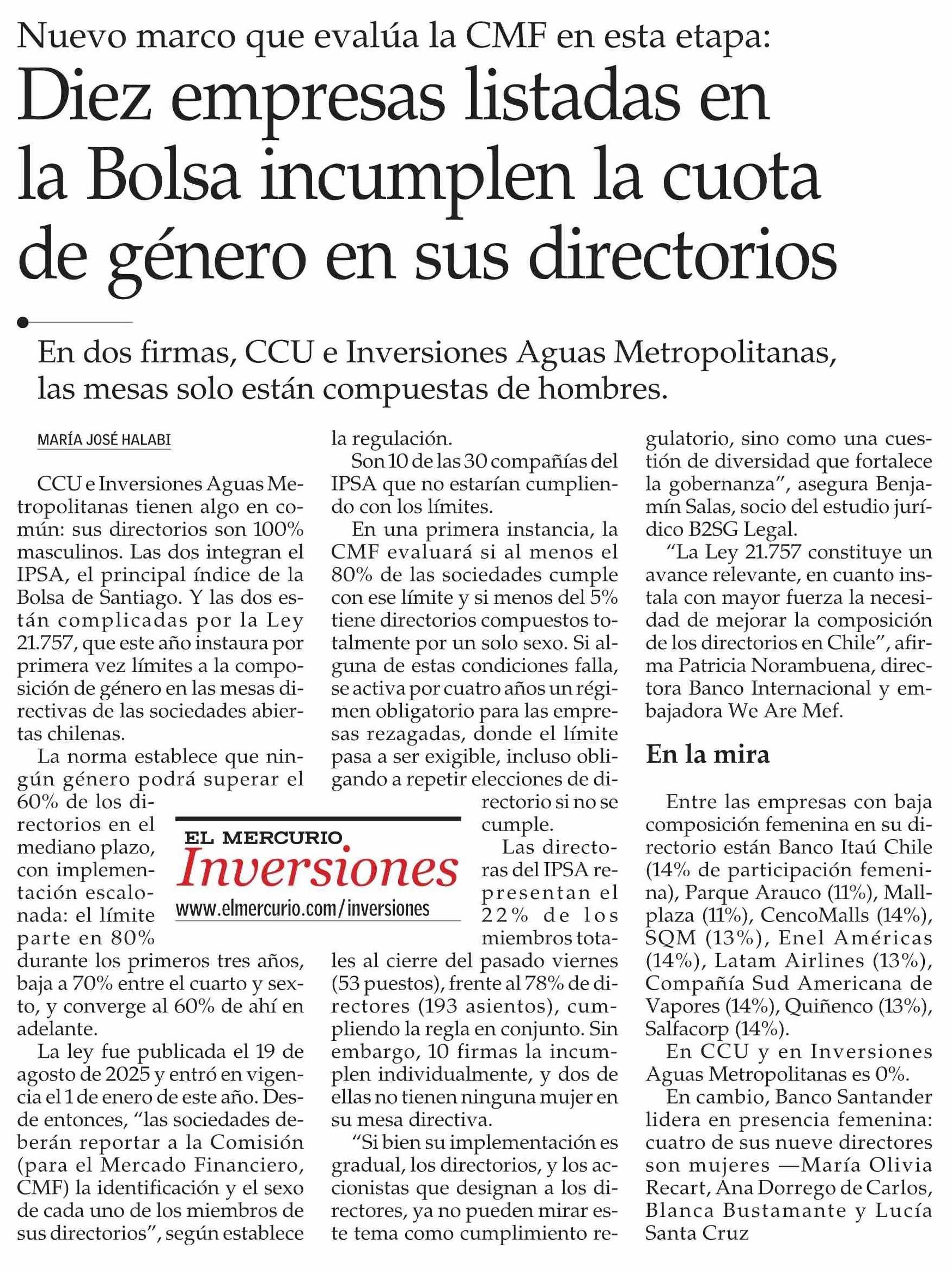 Diez empresas listadas en la Bolsa incumplen la cuota de género en sus directorios