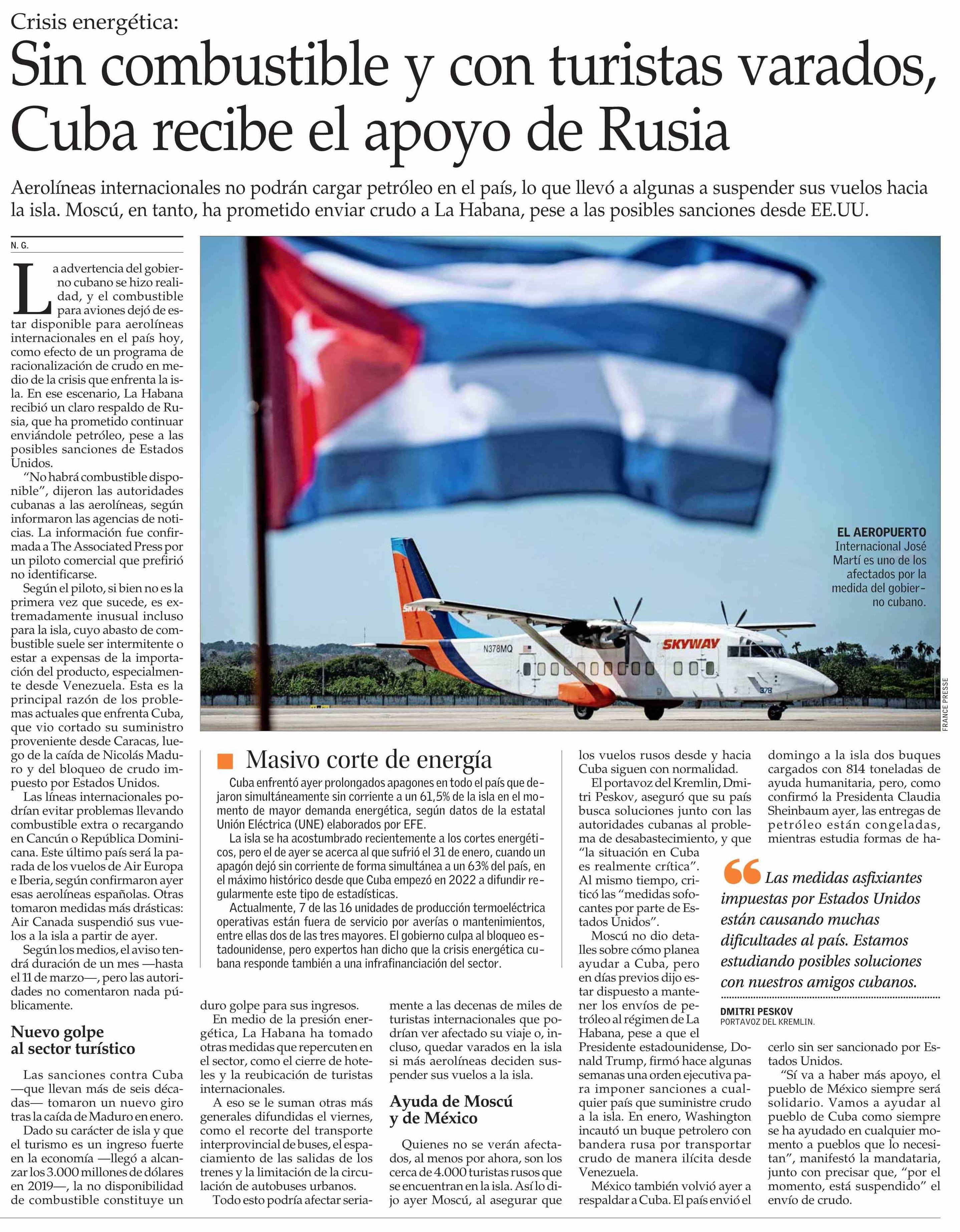 Sin combustible y con turistas varados, Cuba recibe el apoyo de Rusia