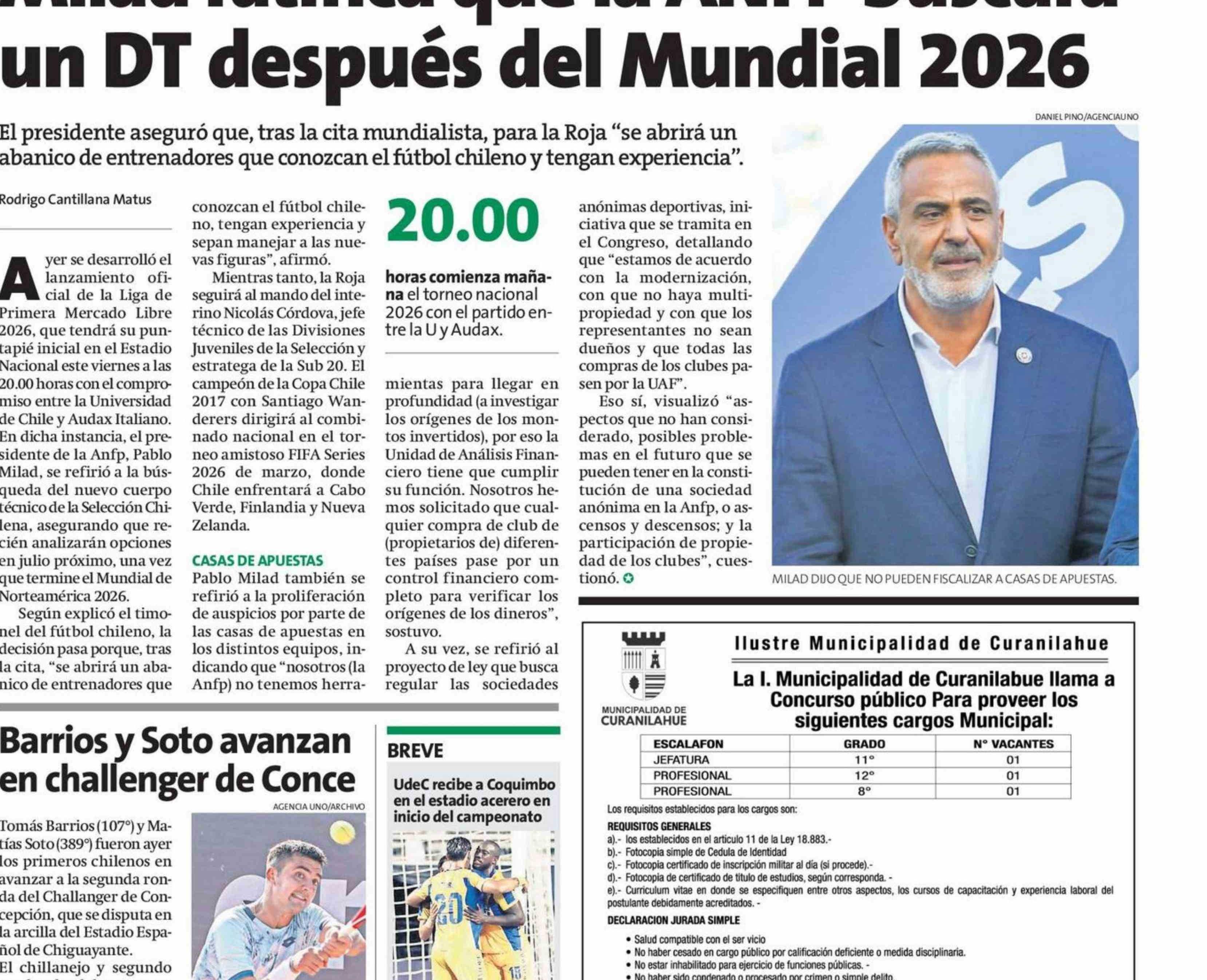 Milad ratifica que la ANFP buscará un DT después del Mundial 2026