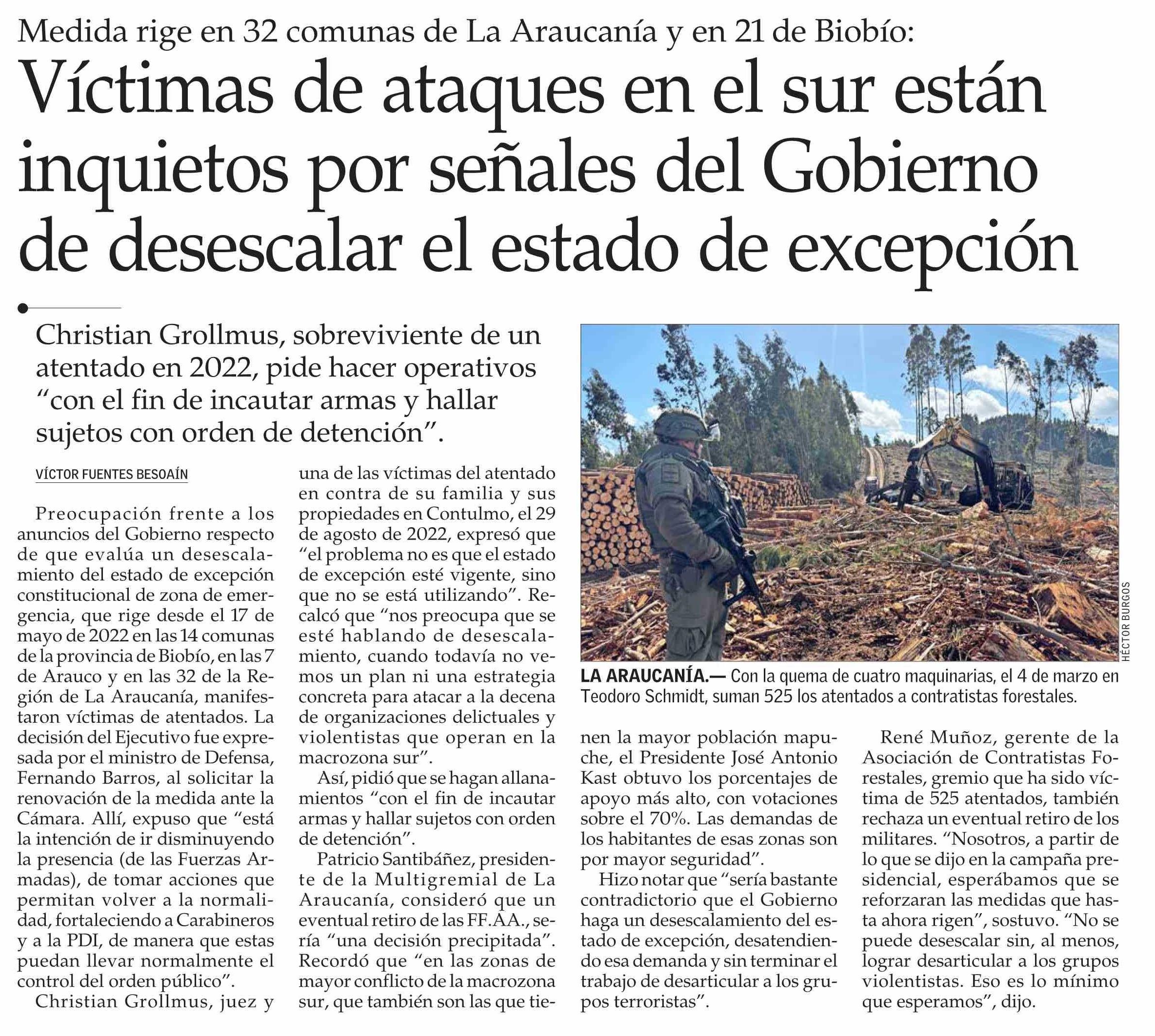 Víctimas de ataques en el sur están inquietos por señales del Gobierno de desescalar el estado de excepción