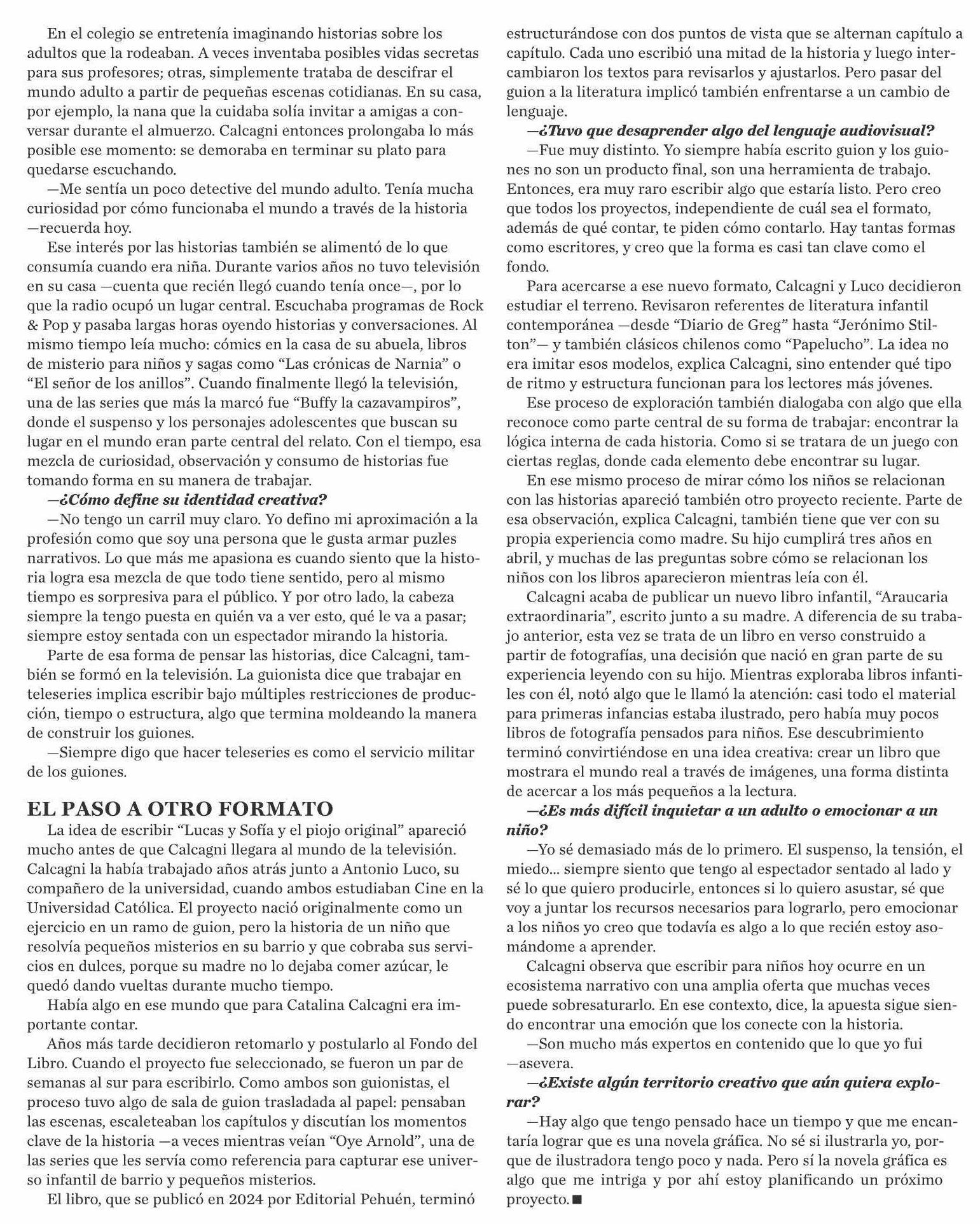 Catalina Calcagni “Soy una persona que le gusta armar puzles narrativos”