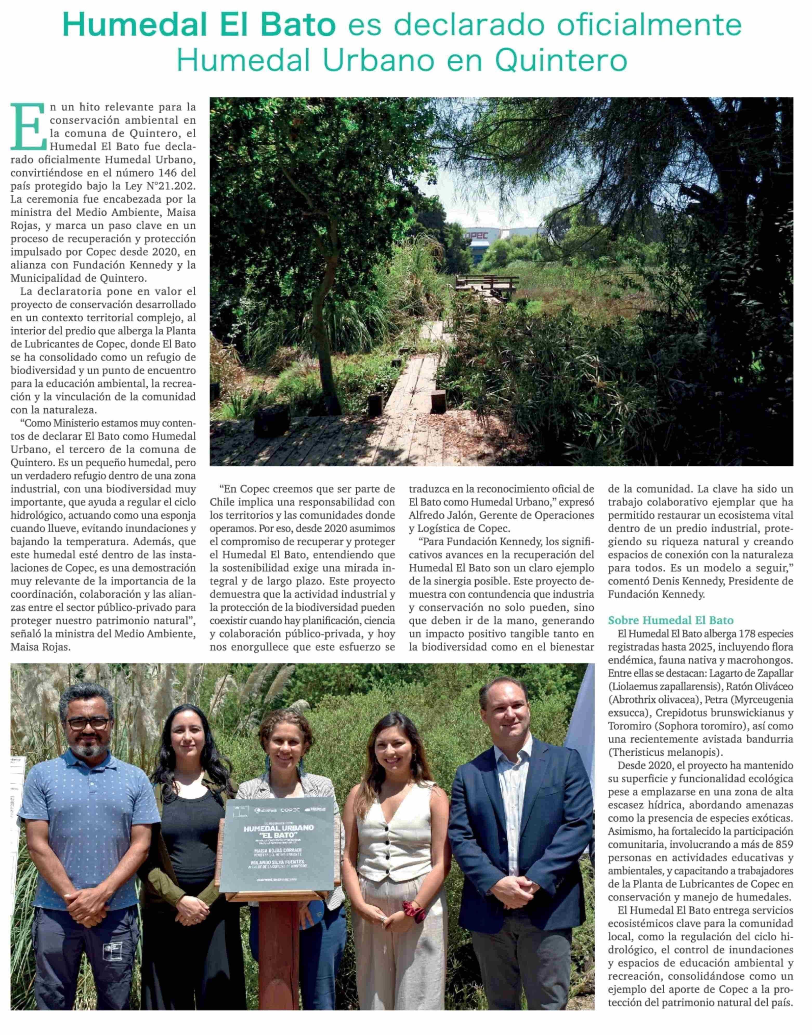 Humedal El Bato es declarado oficialmente Humedal Urbano en Quintero
