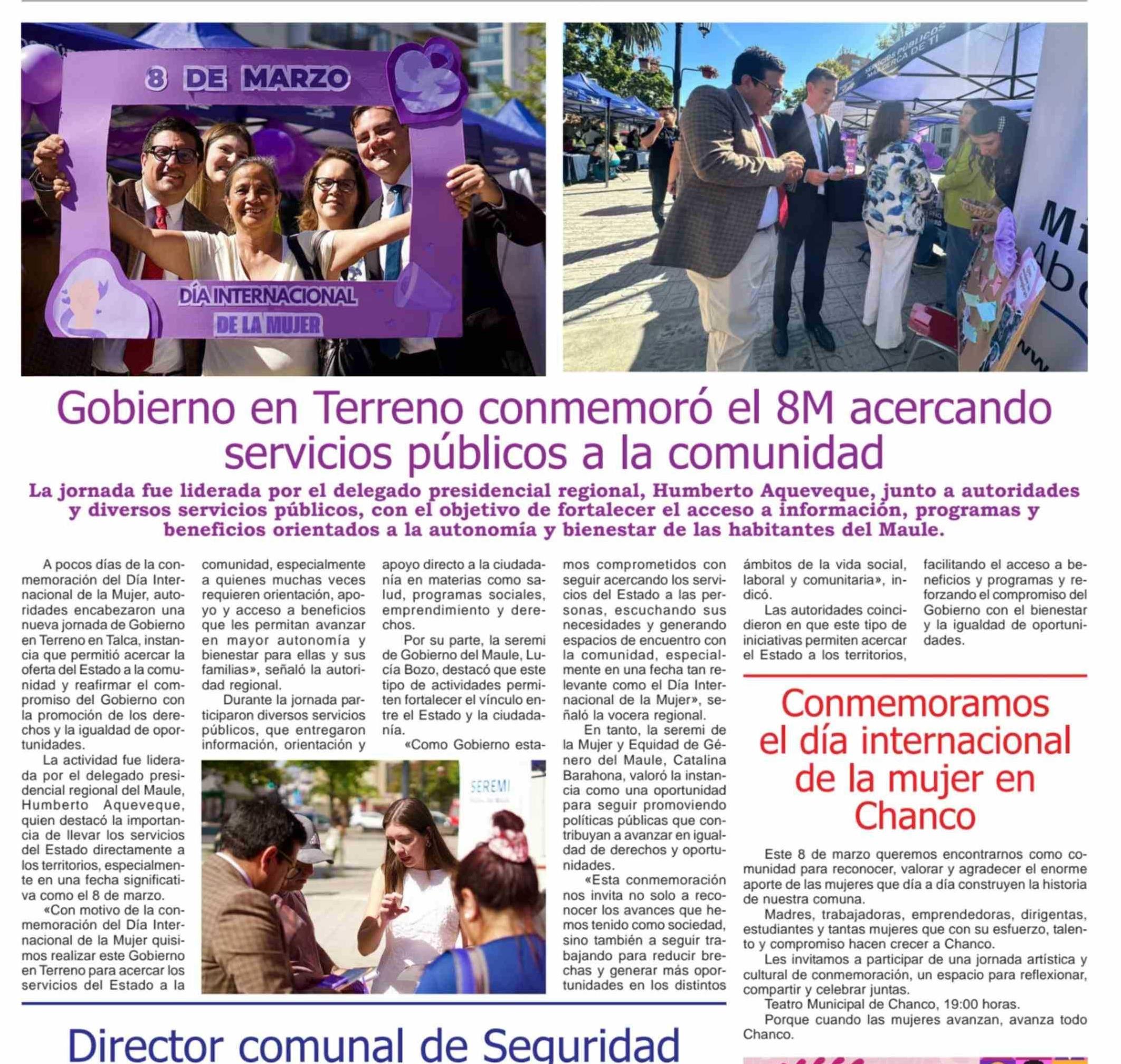 Gobierno en Terreno conmemoró el 8M acercando servicios públicos a la comunidad