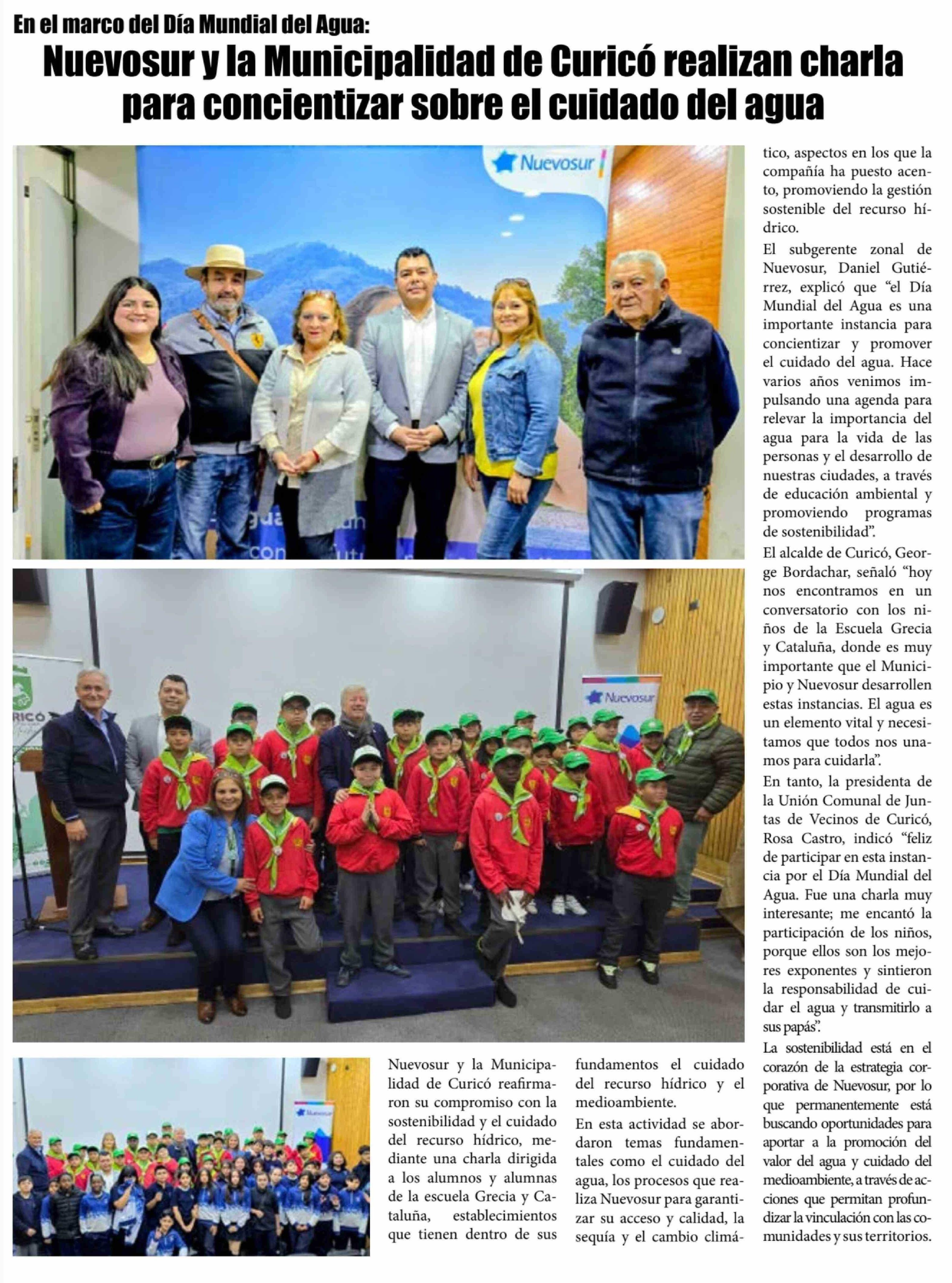 Nuevosur y la Municipalidad de Curicó realizan charla para concientizar sobre el cuidado del agua