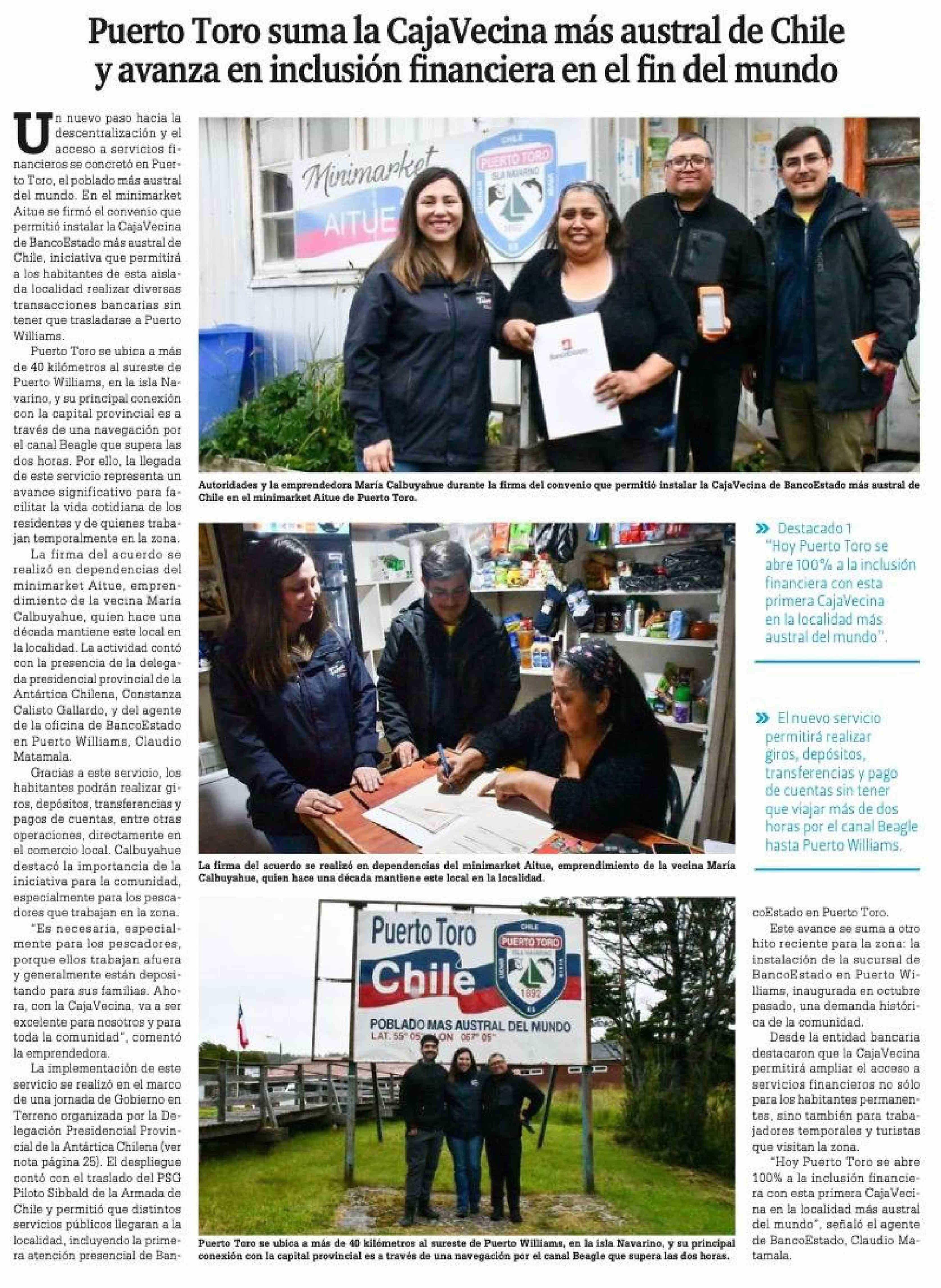 Puerto Toro suma la CajaVecina más austral de Chile y avanza en inclusión financiera en el fin del mundo