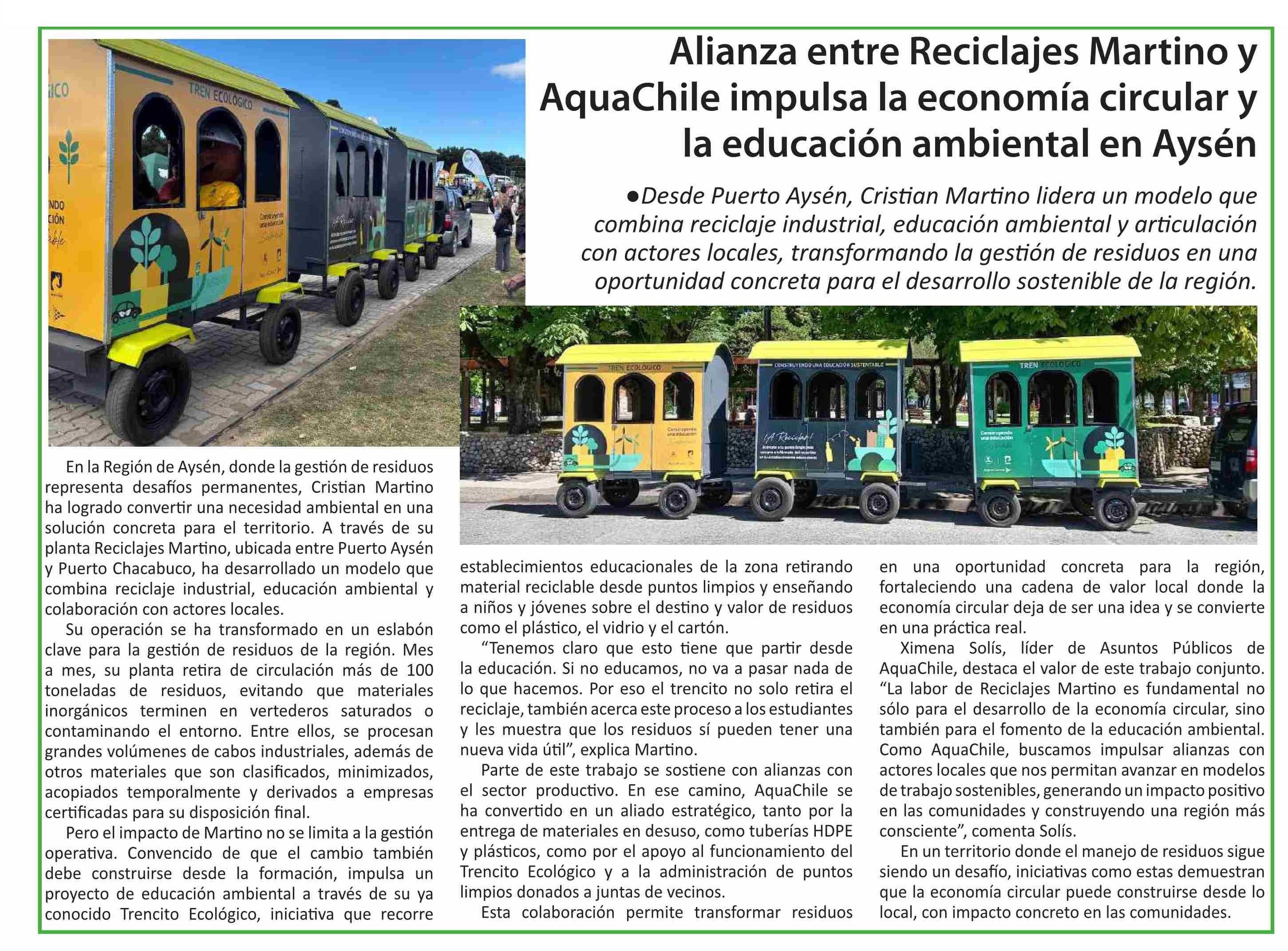 Alianza entre Reciclajes Martino y AquaChile impulsa la economía circular y la educación ambiental en Aysén