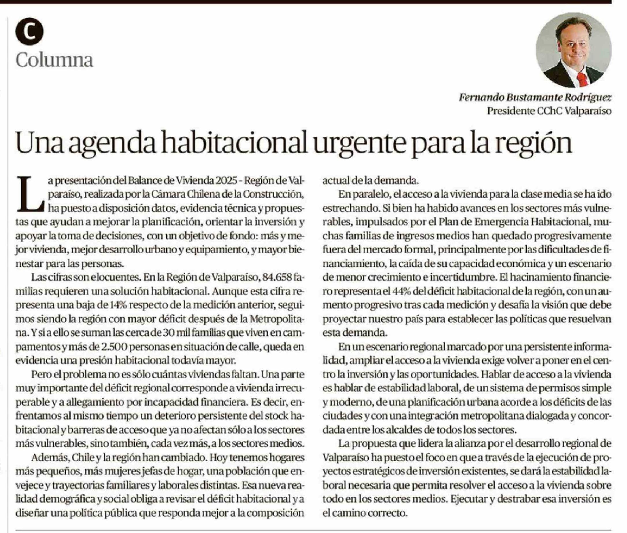 Columnas de Opinión: Una agenda habitacional urgente para la región